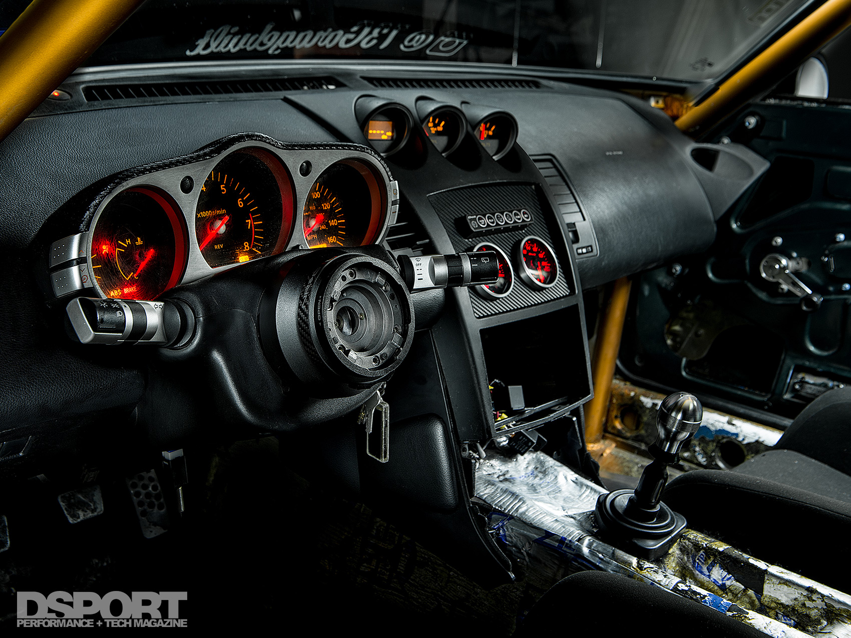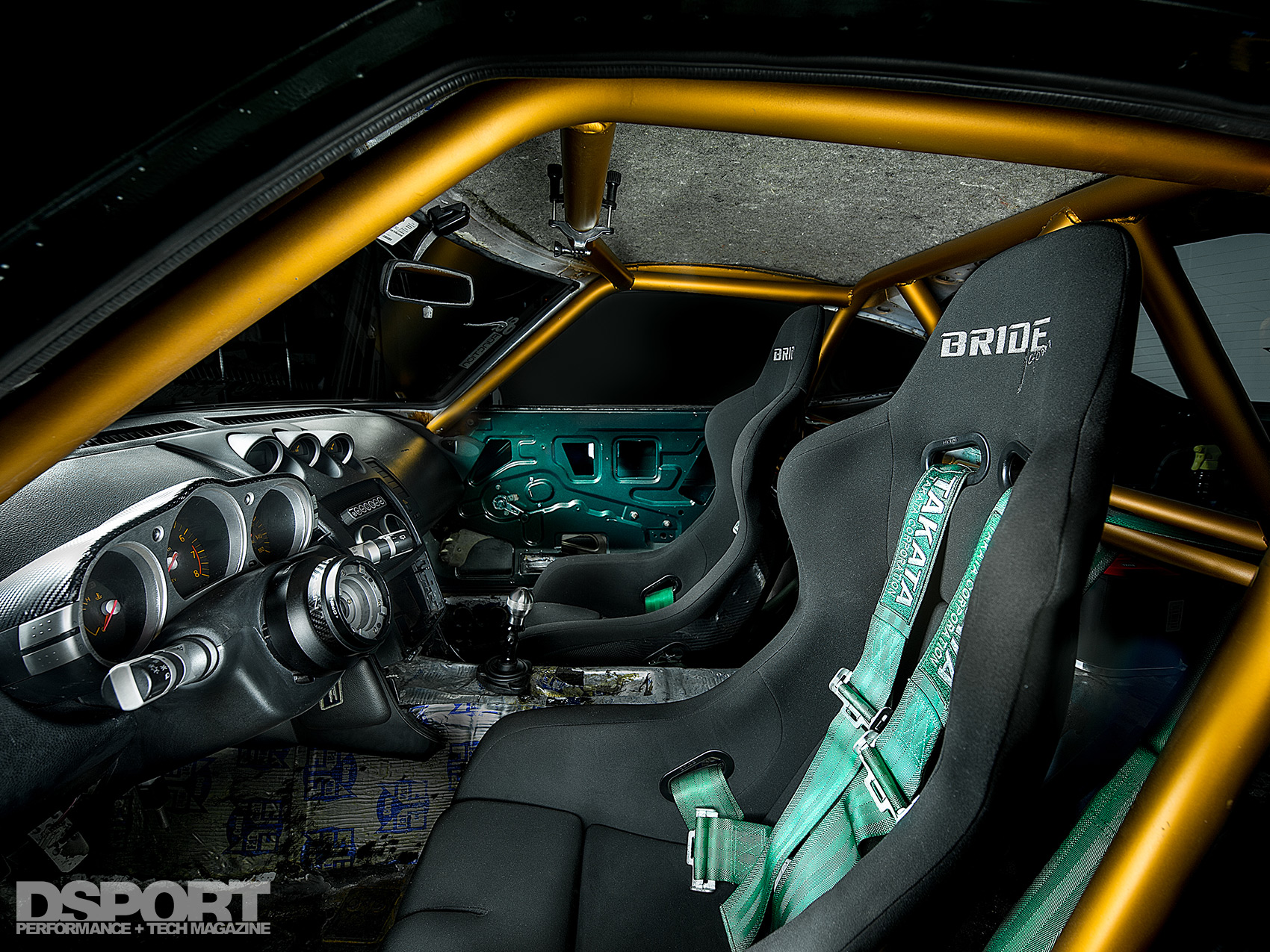 Making use of all that the Z33 donor chassis had to offer, Edgar did not stop at just the engine, wiring harness and the ECU. He also transferred the Z33 chassis harness, dash, gauge cluster and steering column into the S30 shell. A pair of DEFI gauges positioned on a custom gauge panel complement the Z33 center column. A Kirk Racing 6-point cage outfitted the cabin with an extra layer of protection for the occupants. Within the confines of the cage, Edgar installed a pair of BRIDE VIOS III bucket seats with Takata Racing 4-point harnesses finishing the interior revitalization.