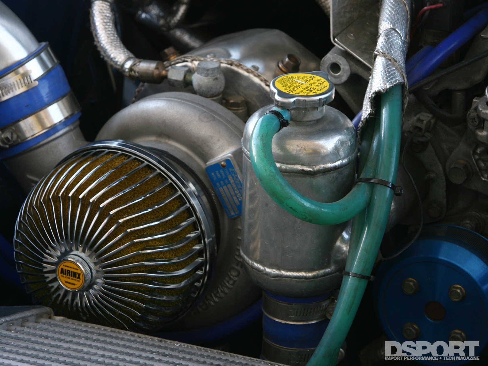 Joining the intercooler in the v-mount set-up is the radiator, which has been mounted at a 45o angle to make best use of the airflow channeled in by the bumper and vented out by the bonnet. On each side of these are the oil coolers, which are cooled by the air from each of the side intakes. An air-separator system with a sub-tank has been added for good measure. Rotaries are well-known for generating a lot of heat, but with these upgrades in place the owner can rest assured that he can safely push the 13B hard any time. A set of 850cc/min injectors are fed by twin Nismo fuel pumps while the ignition is improved with a set of NGK racing plugs, a Revolution ignition system and a Feed Grounding kit. Engine management is taken care of by an A’PEXi PowerFC stand-alone unit which is easily monitored thanks to the A’PEXi Commander unit mounted in the interior.