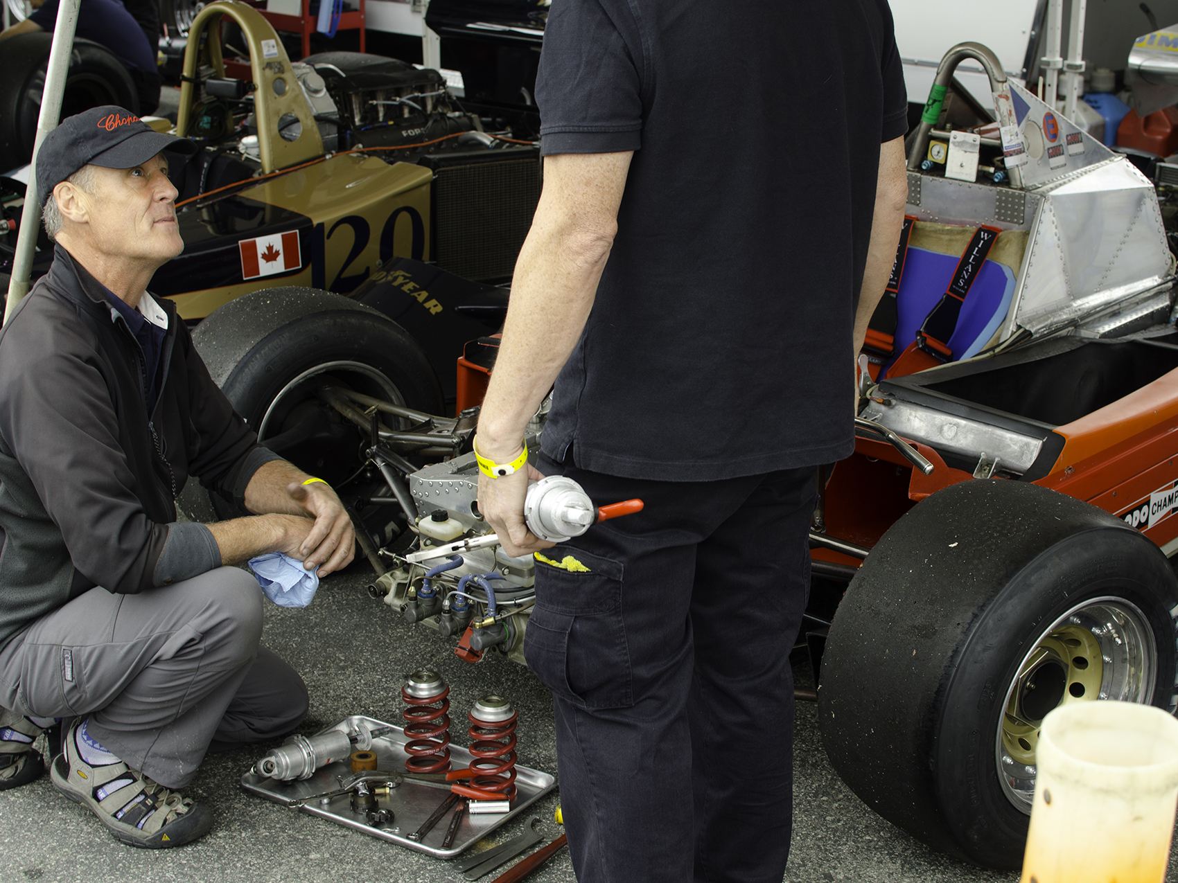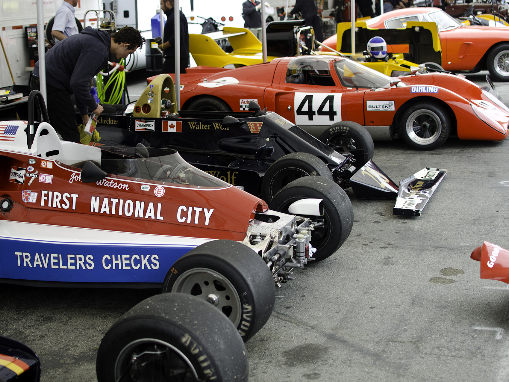 As I continued through the paddock, the floodgates opened up. Although BMW was the theme of the weekend, Mazda brought out its four-rotor 767B, predecessor to the 787B, to celebrate the 25th anniversary of the 787B’s 24 Hours of Le Mans victory in 1991. I personally saw the 787 race in 1990 at the Sarthe racetrack in France. The four rotor sound back then was and still is a screaming angry engine that tickles your eardrums. With every turn of my head, I saw decades and decades of beautifully restored Formula One cars, Le Mans prototypes, vintage sportscars and sedans being prepared to hit the track. We’re not talking parade laps either, some of these car owners/drivers race these historic purpose-built works of art with the pedal smashed to the floor. Over the years there have been some memorable ego-driven battles racing up the hill and down through the famed corkscrew, and this year was no different. The on-track wheel-to-wheel action did not disappoint.