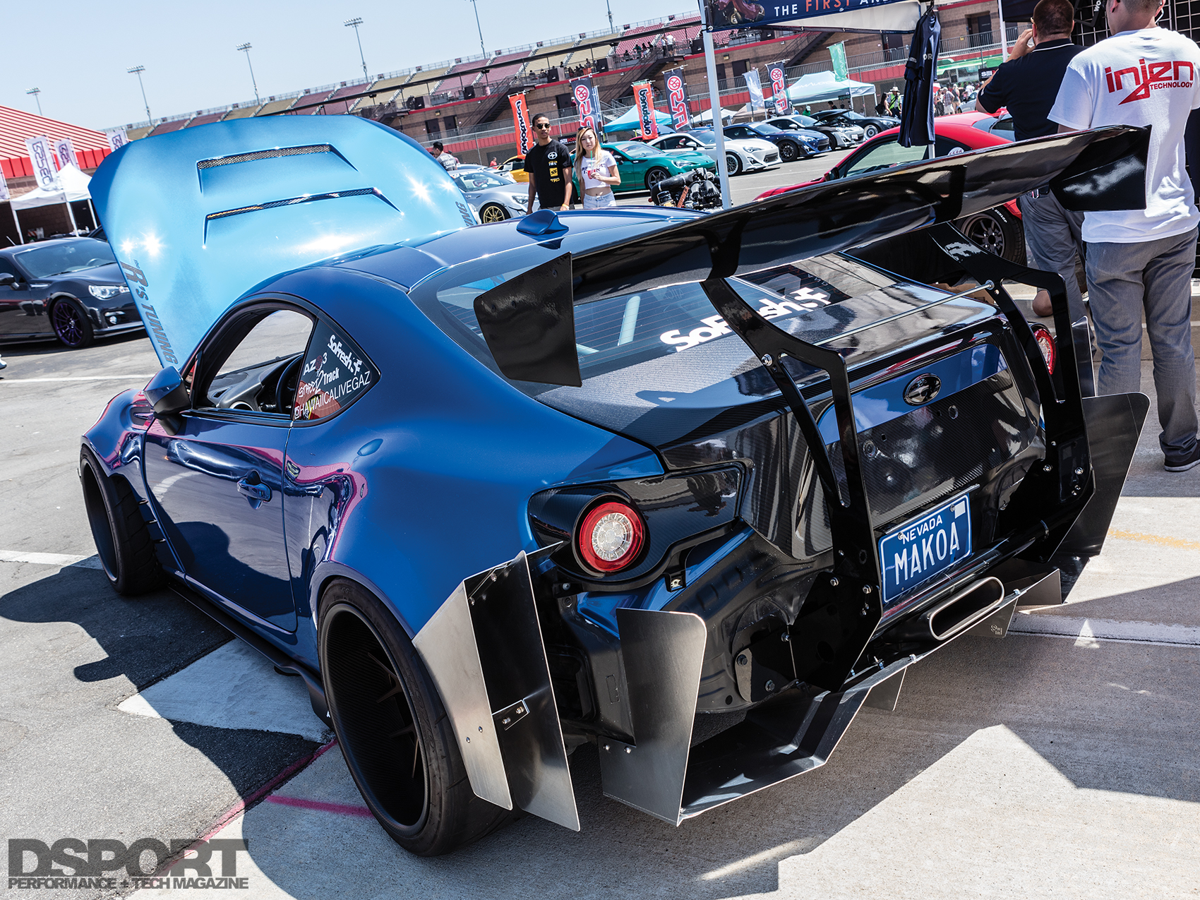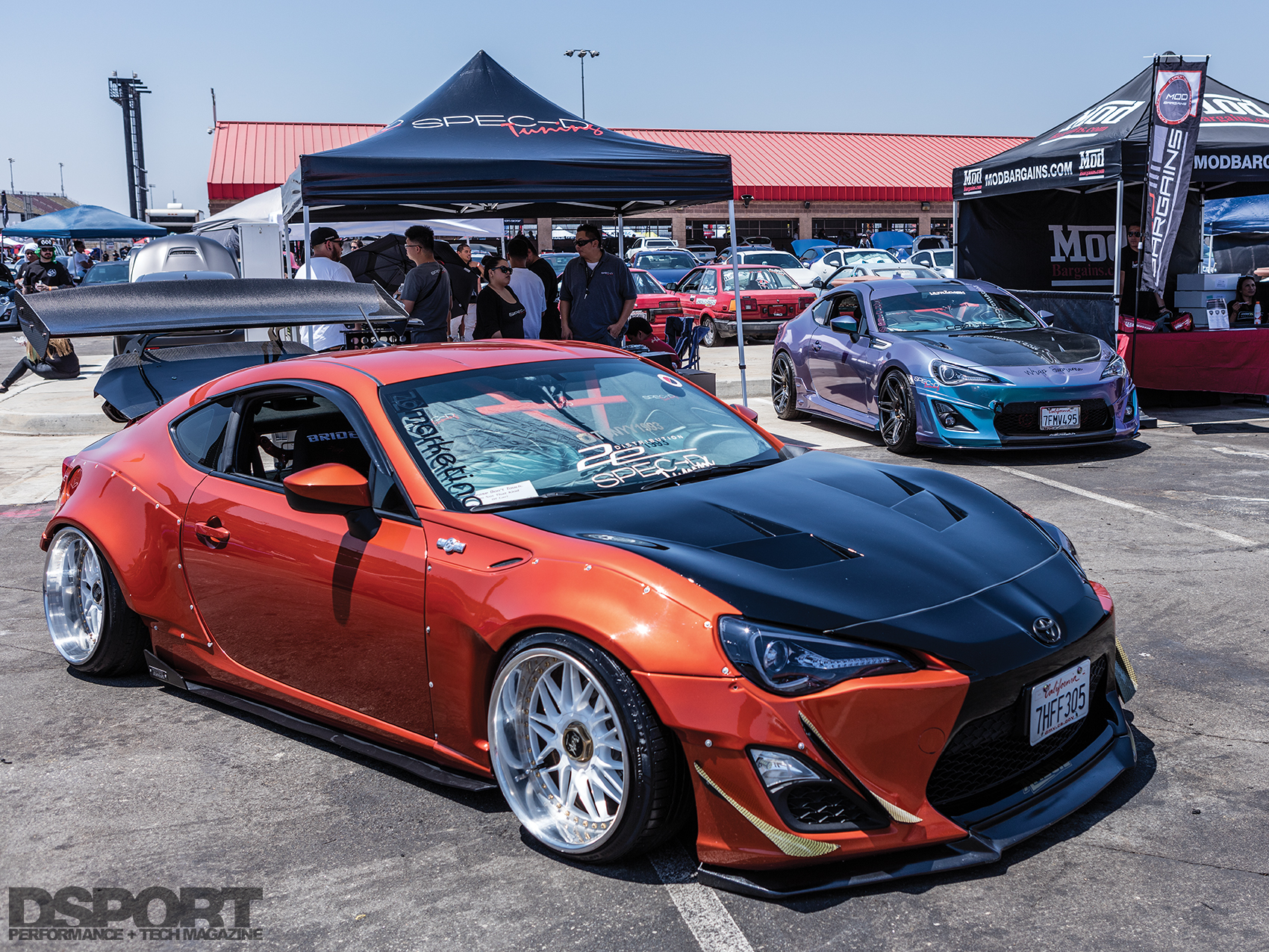 While there may not have actually been any celebrities at the event, there were several special vehicles on display. Toyota Corporation was in attendance and debuted a prototype of its kouki ZN6 (Toyota 86) alongside 86FEST event promoter Antonio Alvendia’s personal kouki AE86. In addition, ADVAN brought the JDM TRD Griffon 14R60 it ran at Pikes Peak to display, adding to the automotive eye candy. Near the main stage, Kei Miura and LTMW World debuted the new Rocket Bunny V.3 aero kit alongside examples of the first and second-generation body kits. Finally, the Evasive Motorsports/Mackin Industries/Scion Racing turbocharged Pikes Peak Hill Climb FR-S anchored the Turn 14 Distribution booth in front of the main stage.