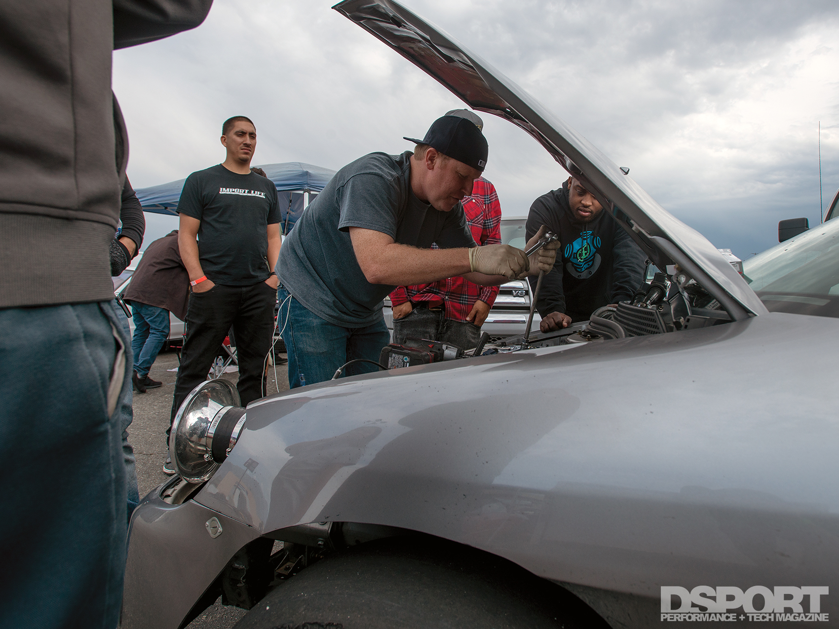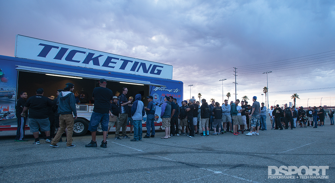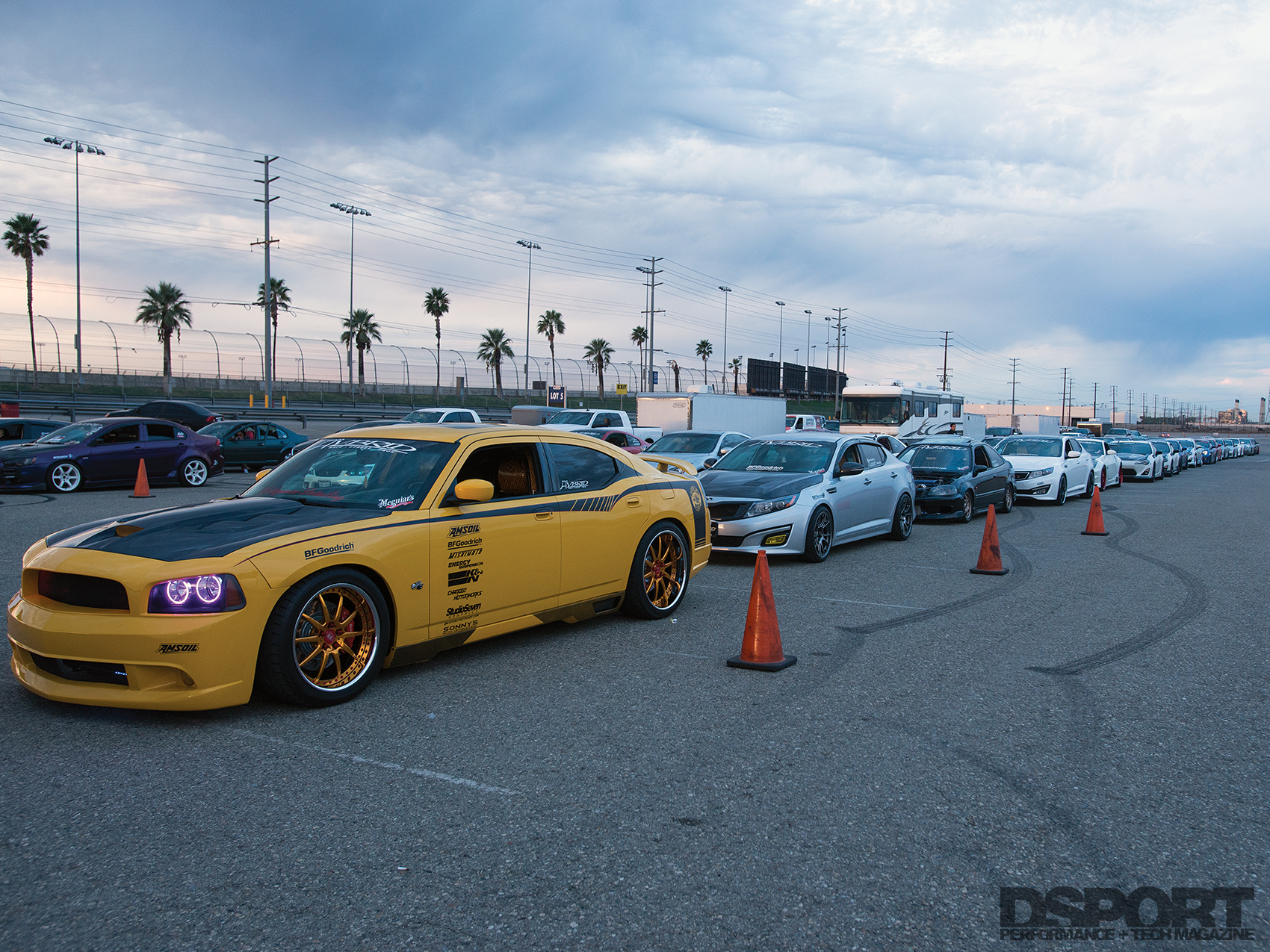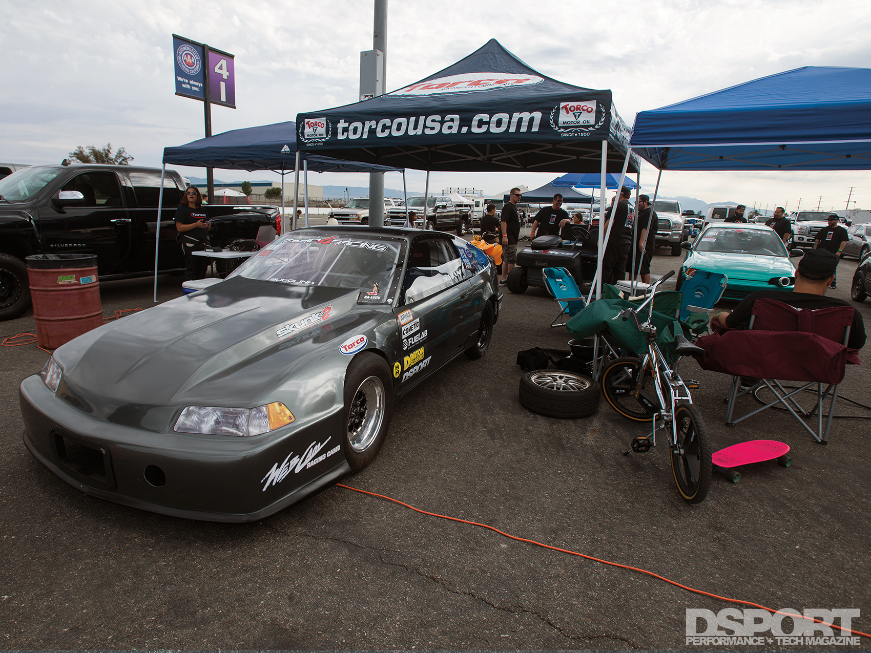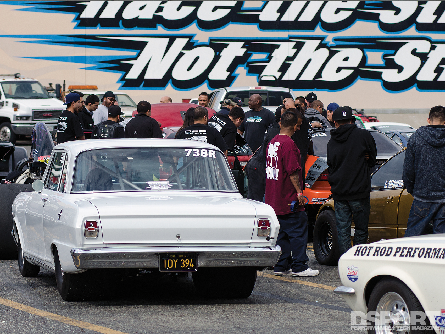 Moderate temperatures greeted attendees on Sunday October 23, 2016, offering ideal racing conditions as the masses made their way into the venue at Auto Club Dragway in Fontana, California. The racers set up in their pits while the InstaFame contestants filed to the end of the track to coordinate and get staged into the car show. A field of over 200 racers began filtering through tech before returning to the pits in preparation for the track to go hot. Around the big tent next to the grandstands, the vendor row buzzed with activity as tents and tables were set up to display the latest and greatest must-have products.