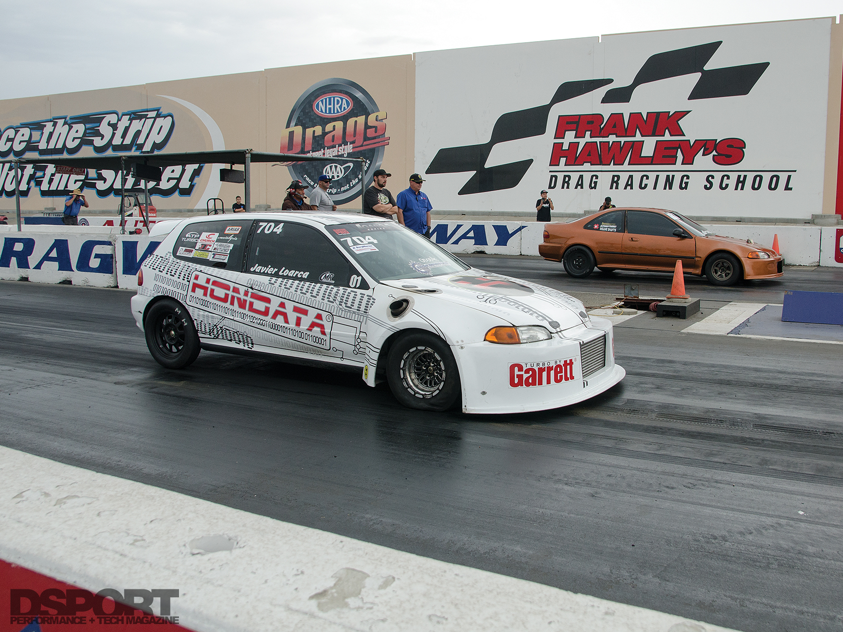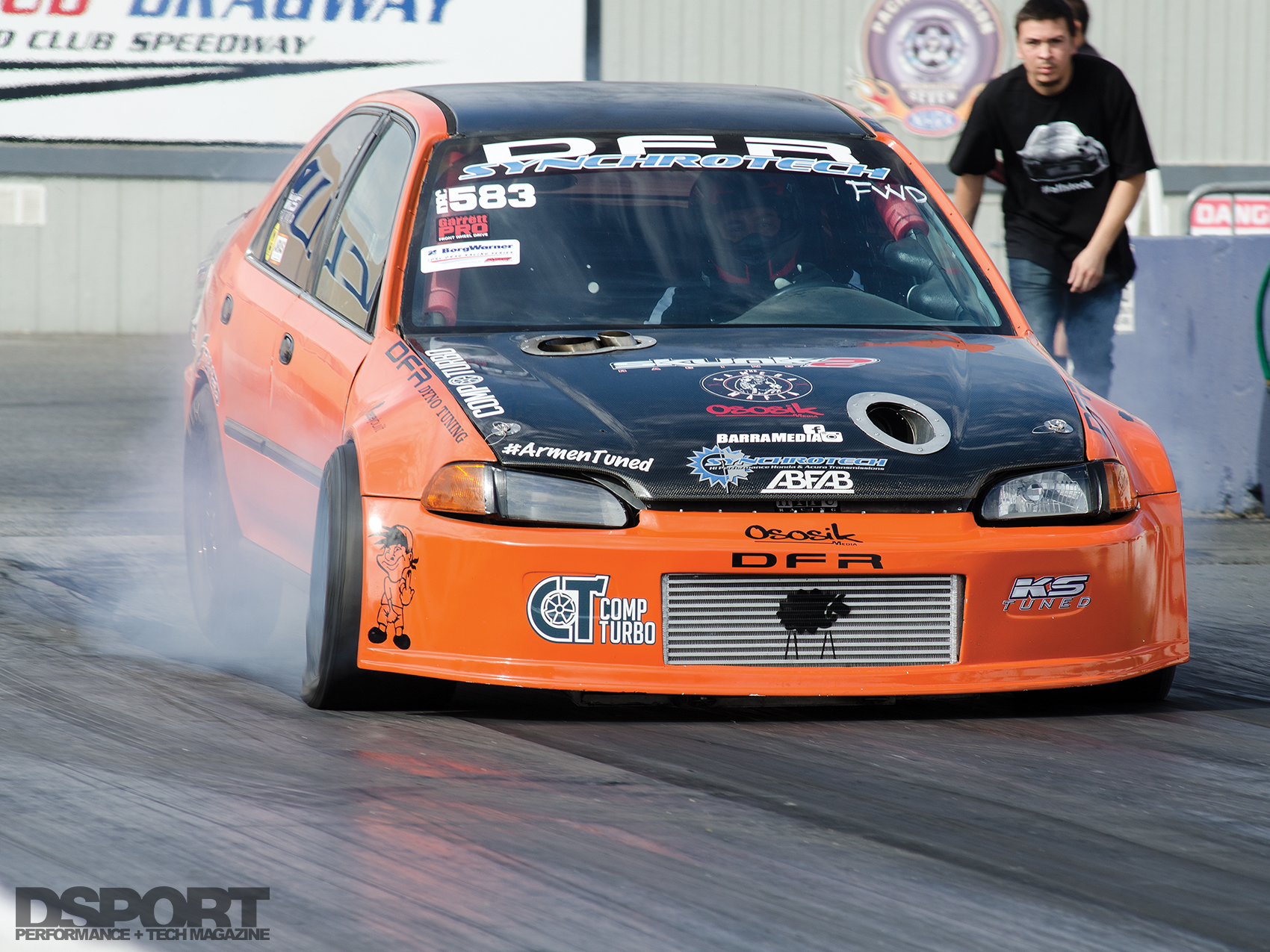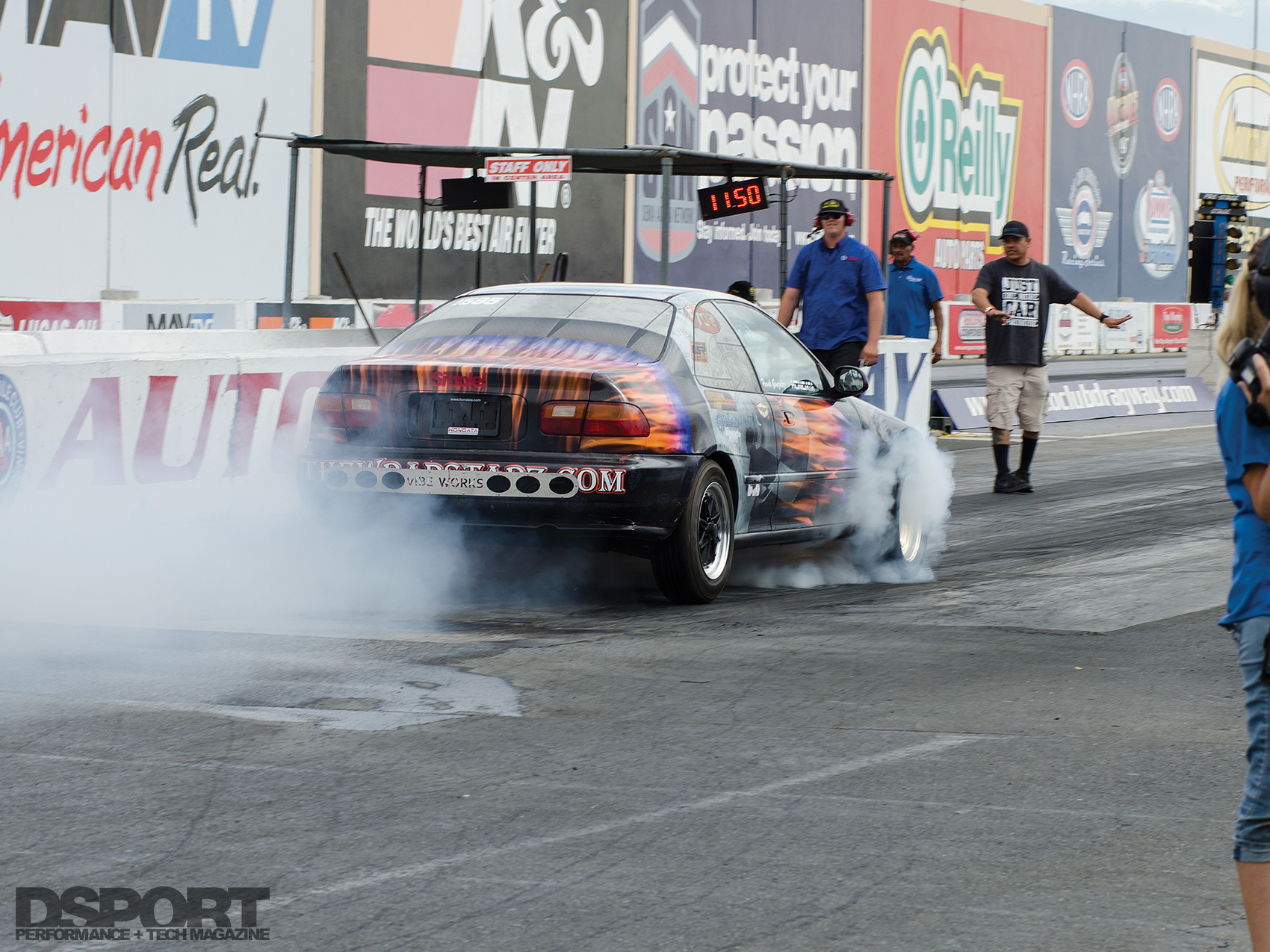 The staging lanes were packed as racers began making their first passes of the day. There were a number of scorching passes being made that morning, especially in the Pro FWD class. The top nine qualifiers all ran in the single digits, the quickest of the group being the Darton Sleeves/NoLuck Racing Civic Coupe piloted by Jeremy Bretschneider. Bretschneider’s quickest E.T. of 8.931-seconds put him in the top qualifying spot. Right on his heels was Javier Loarca with a 9.065-second pass. Loarca had the fastest trap speed of the day with a 168.66 MPH. The quickest Pro All Motor contender in the group, Nalani Whatley, was fourth quickest in the class running a 9.495-second pass at 145.33 MPH.