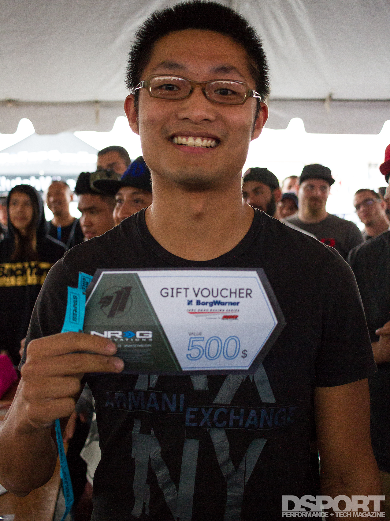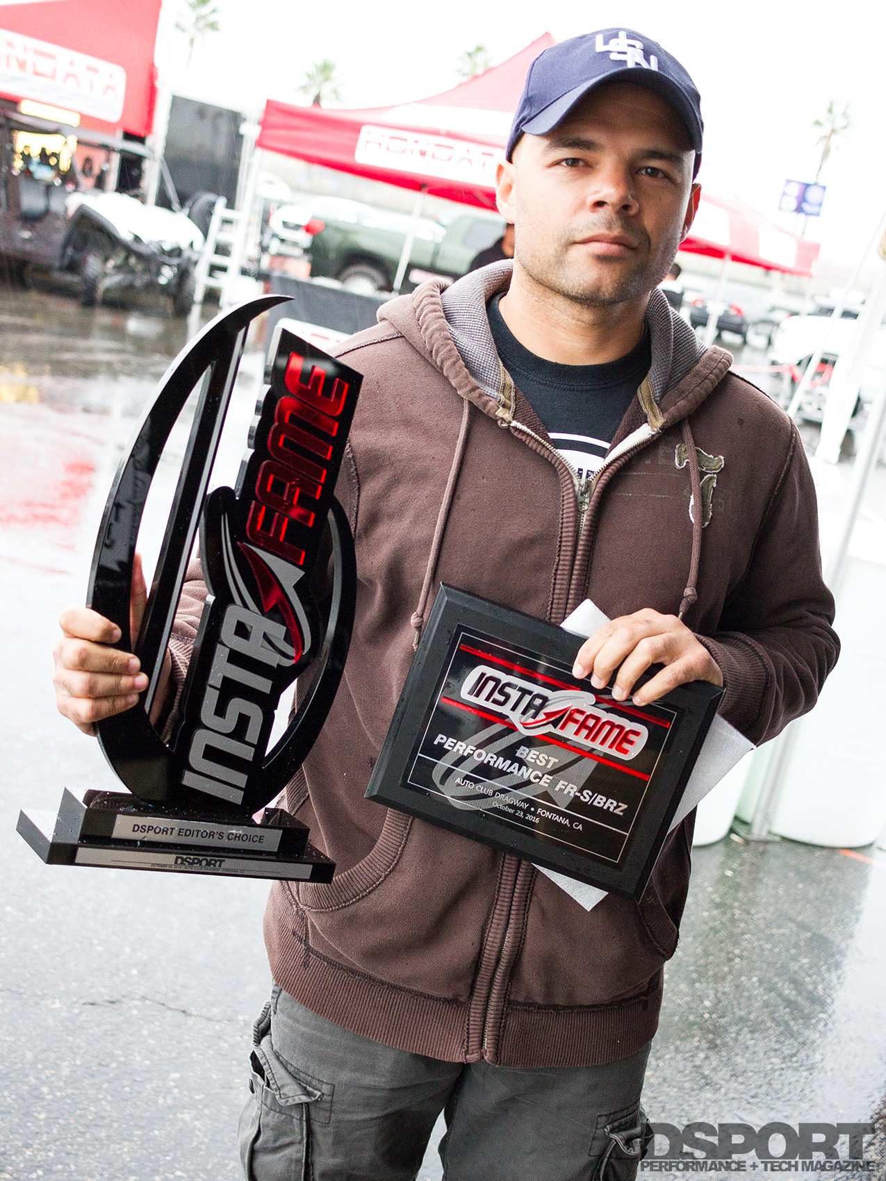 Despite the threatening weather conditions, 22 crews represented in the InstaFame Car Show with many familiar faces and vehicles in addition to some new ones as well. Once judging was completed and the scores were tallied, show participants gathered under the big tent to escape the rain and find out who won. The biggest group from the 2016 IDRC West Coast Nationals, the SD86 crew, dominated in the FR-S/BRZ category. Its members swept all four trophies designated for this one-make class. One member, Mark Cowans, not only captured the Best Performance honor but was also recognized with the coveted DSPORT Editor’s Choice Award as well. The Best Crew from the last event, Team NvUS, also fared well, collecting four more trophies to its credit.