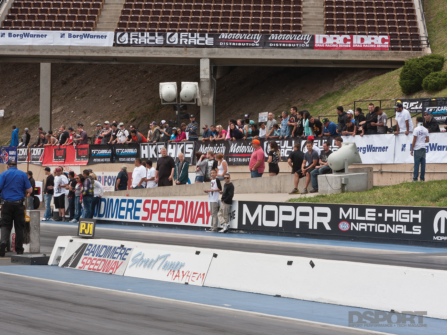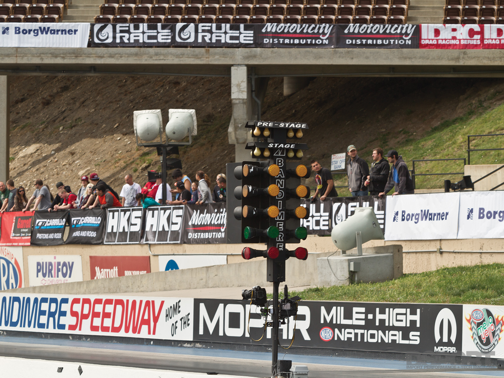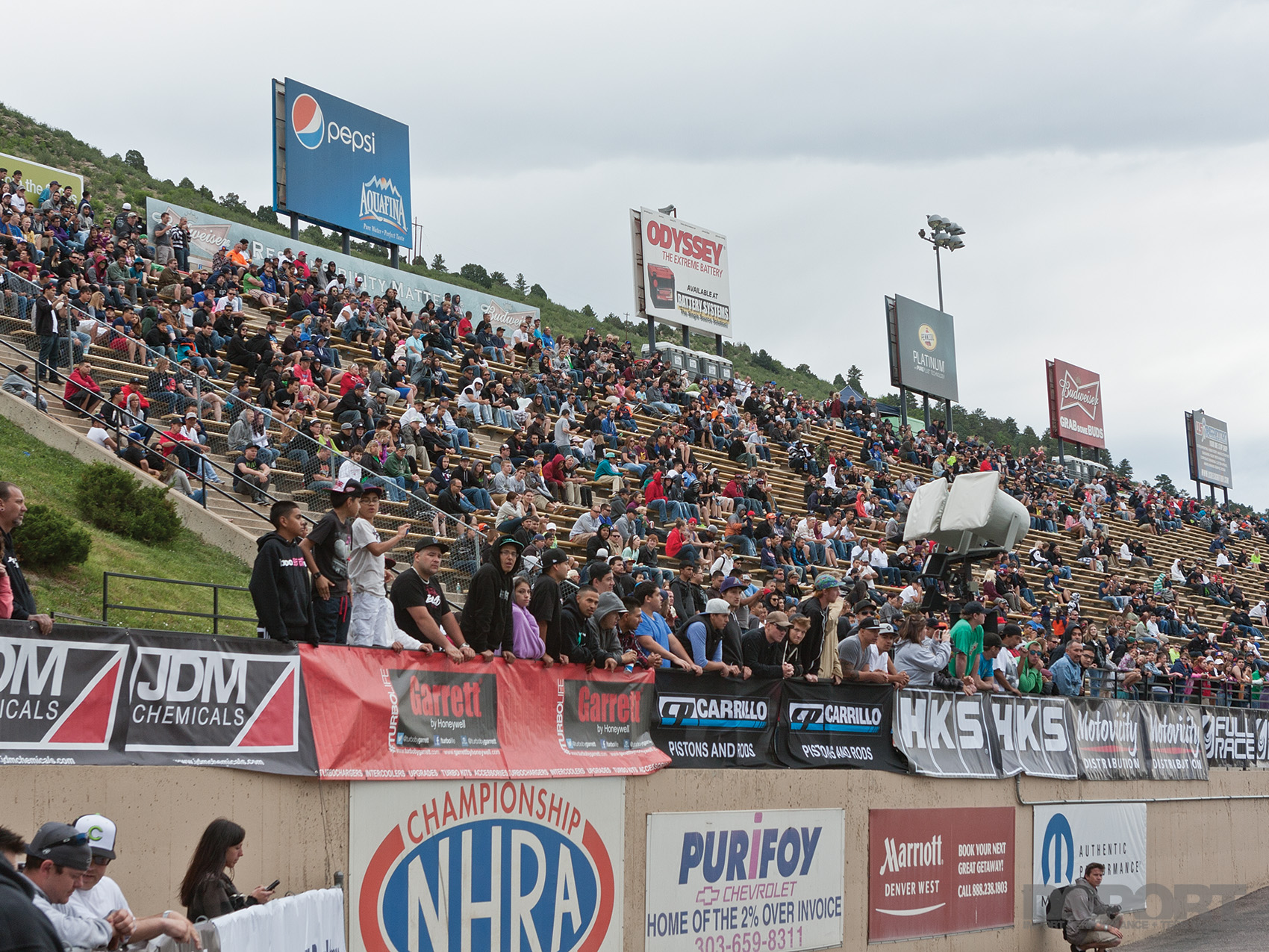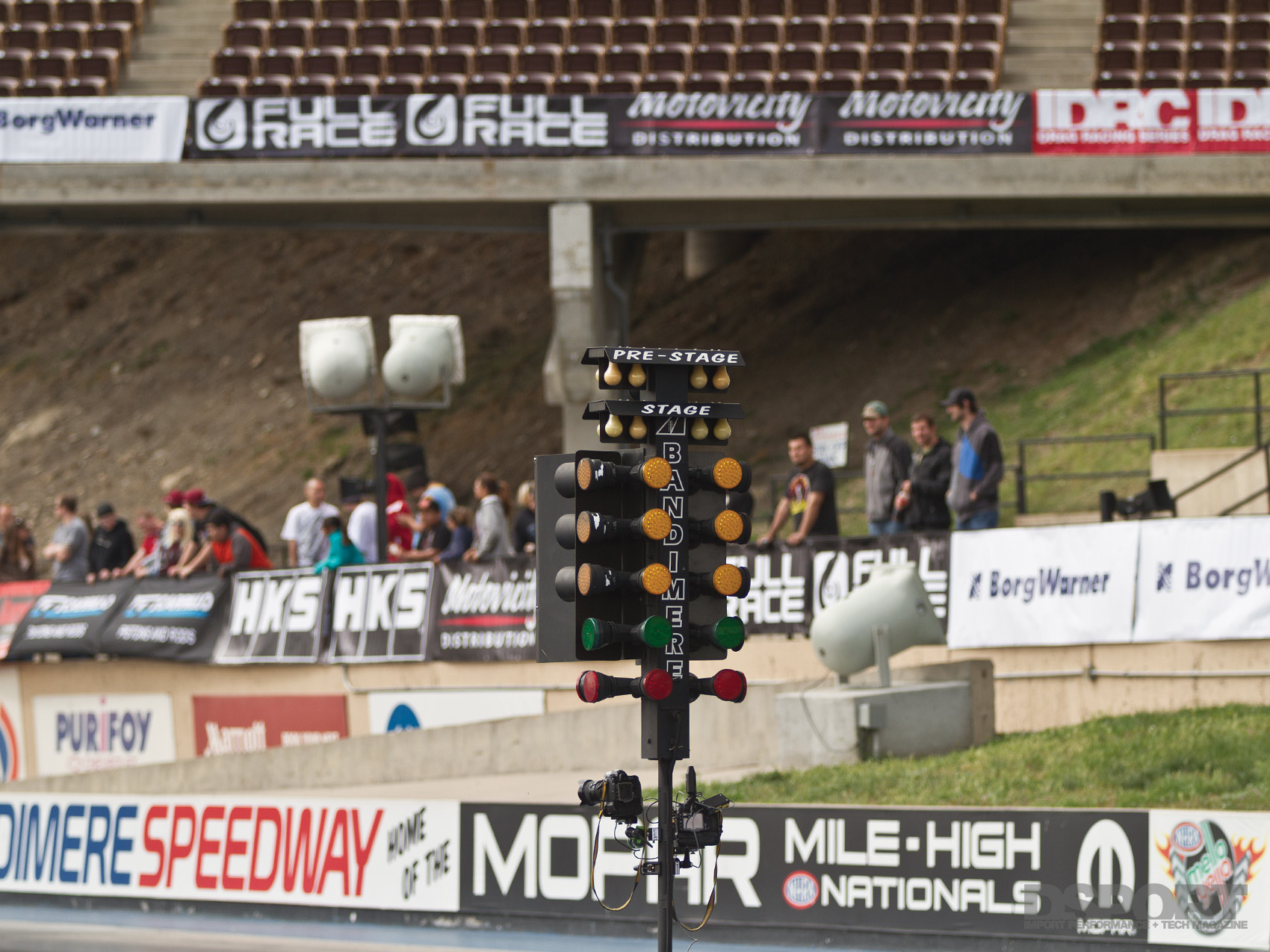 After the heads-up cars completed their first round of qualifying, the bracket cars swarmed the staging lanes and started round two of qualifying. Some unique rides like an R32 Skyline GT-R and the PFISPEED pivot-frame Civic kept the mix of bracket cars interesting. At 12:30pm, racing was stopped as a drizzle turned to drops. As the IDRC and Bandimere Speedway entered the war room to look at the latest radar images, it appeared the storm was going to be a one-and-done affair. It appeared that 30-45 minutes of rain would be followed by a break with no new storms on the horizon.