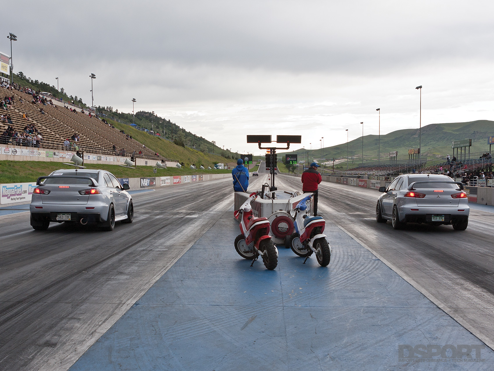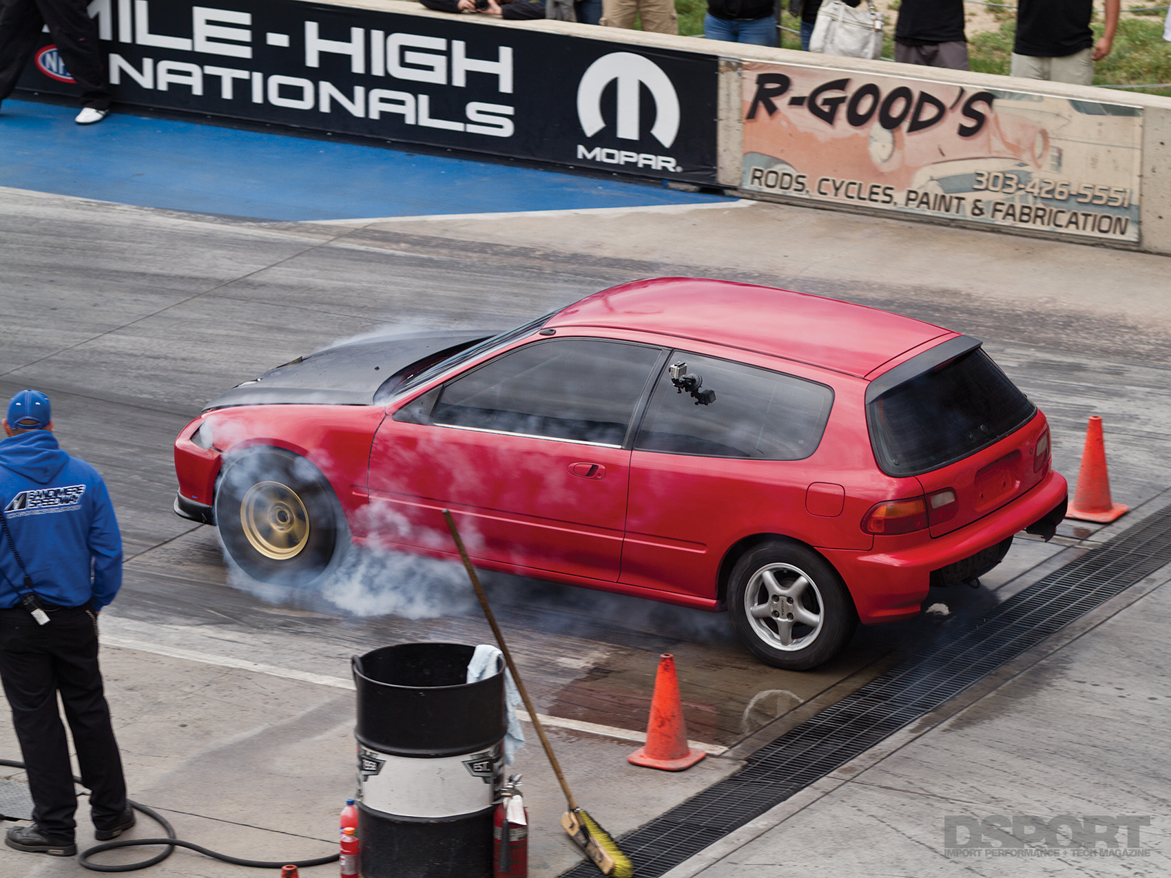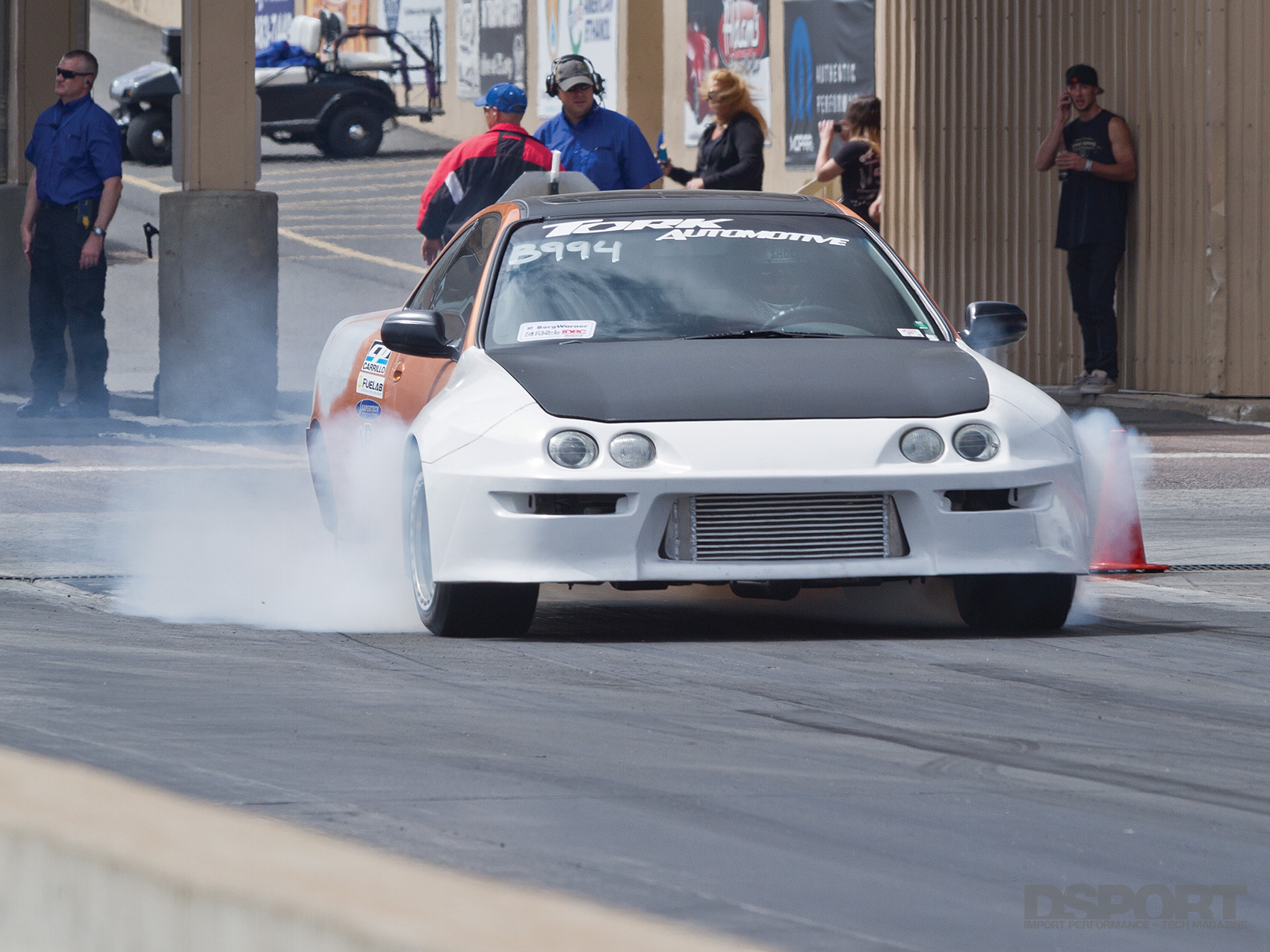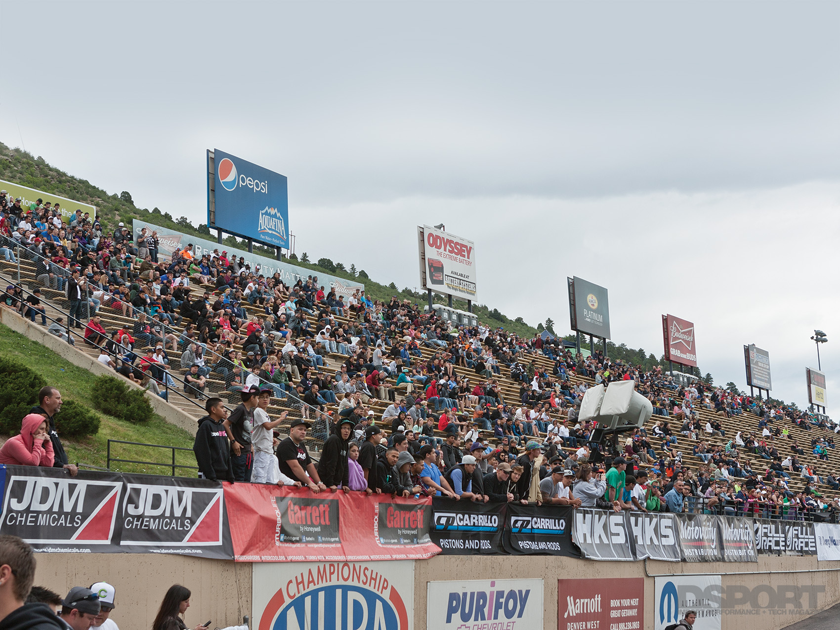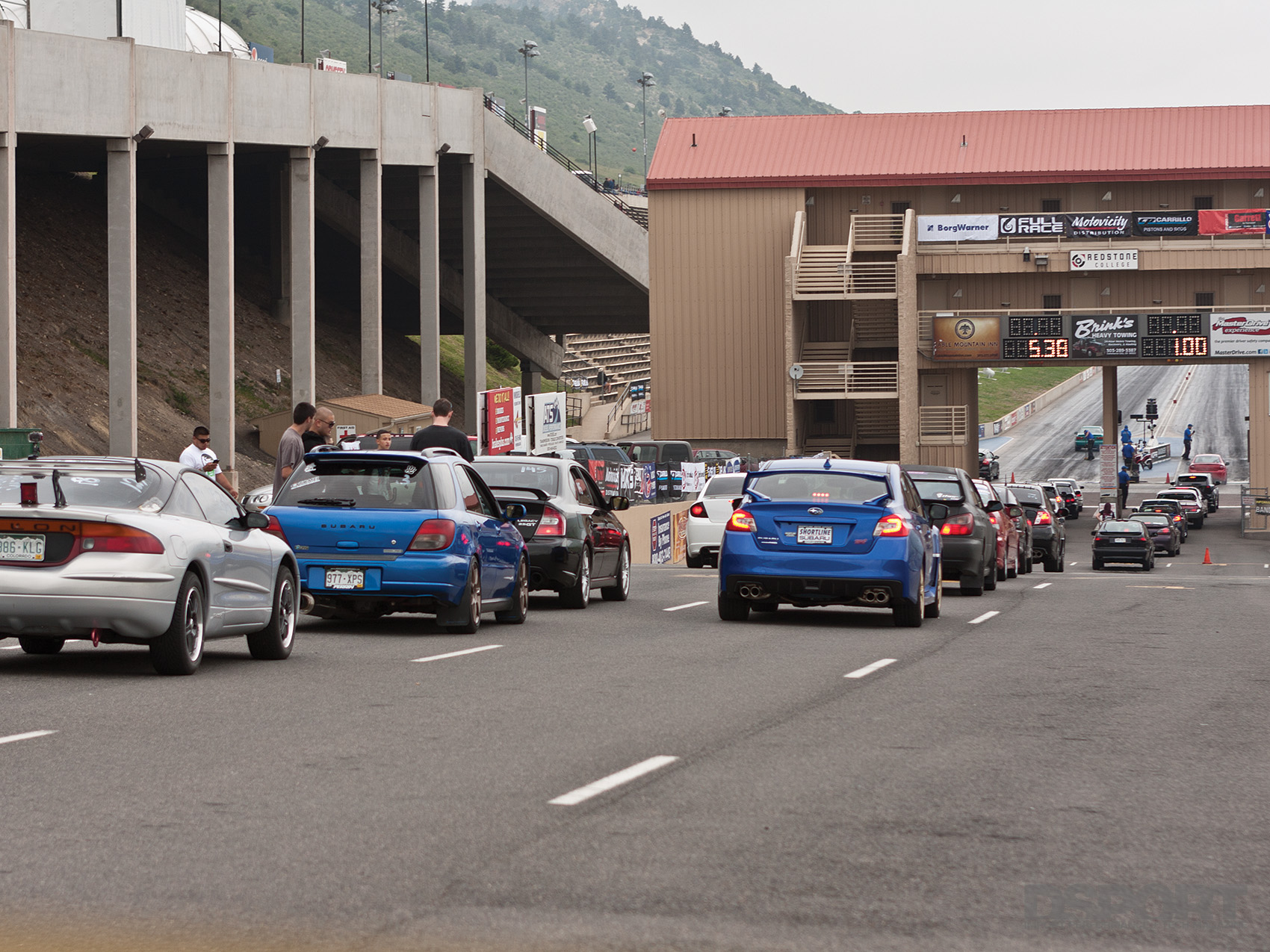 After the heads-up cars completed their first round of qualifying, the bracket cars swarmed the staging lanes and started round two of qualifying. Some unique rides like an R32 Skyline GT-R and the PFISPEED pivot-frame Civic kept the mix of bracket cars interesting. At 12:30pm, racing was stopped as a drizzle turned to drops. As the IDRC and Bandimere Speedway entered the war room to look at the latest radar images, it appeared the storm was going to be a one-and-done affair. It appeared that 30-45 minutes of rain would be followed by a break with no new storms on the horizon.