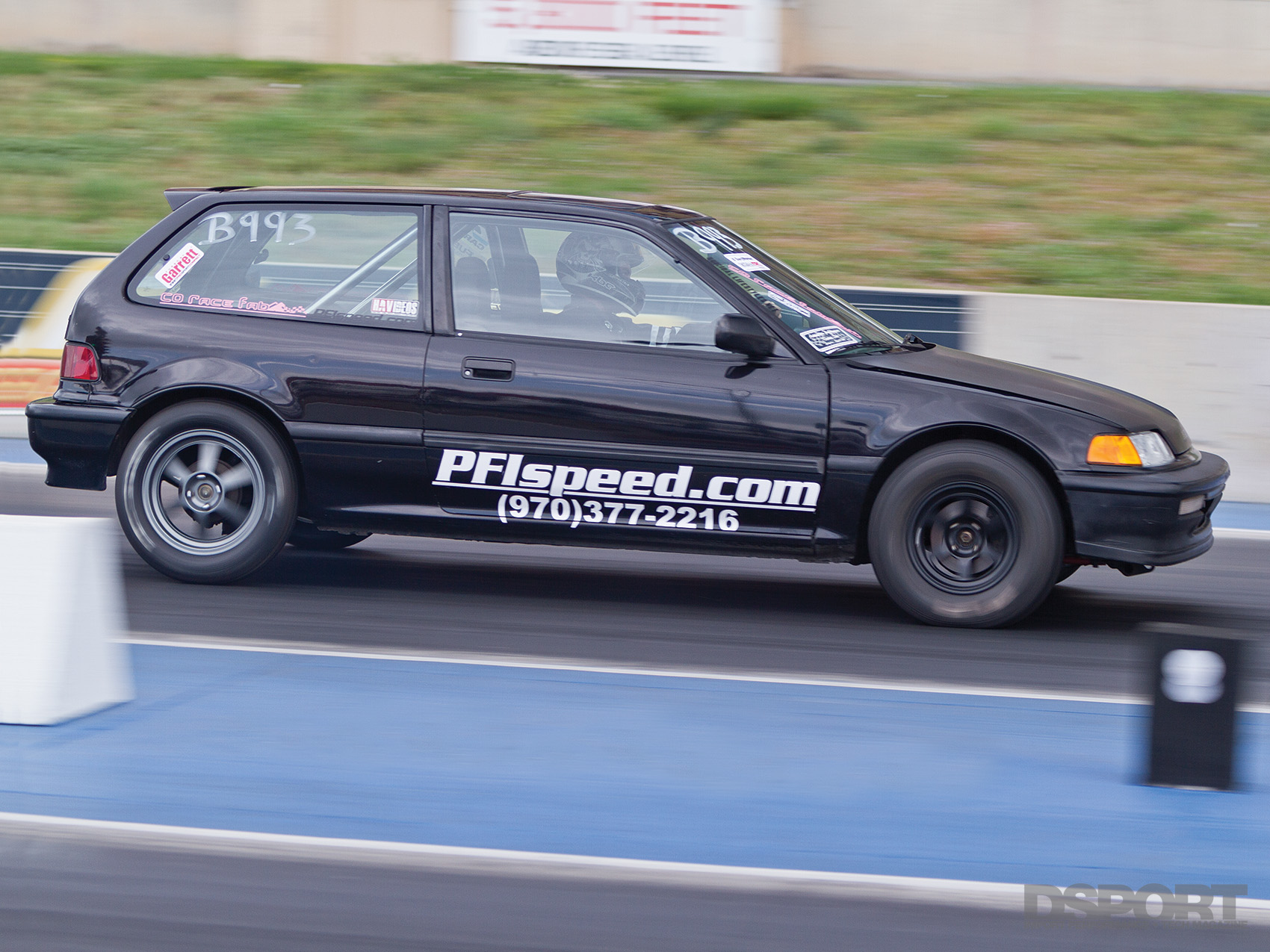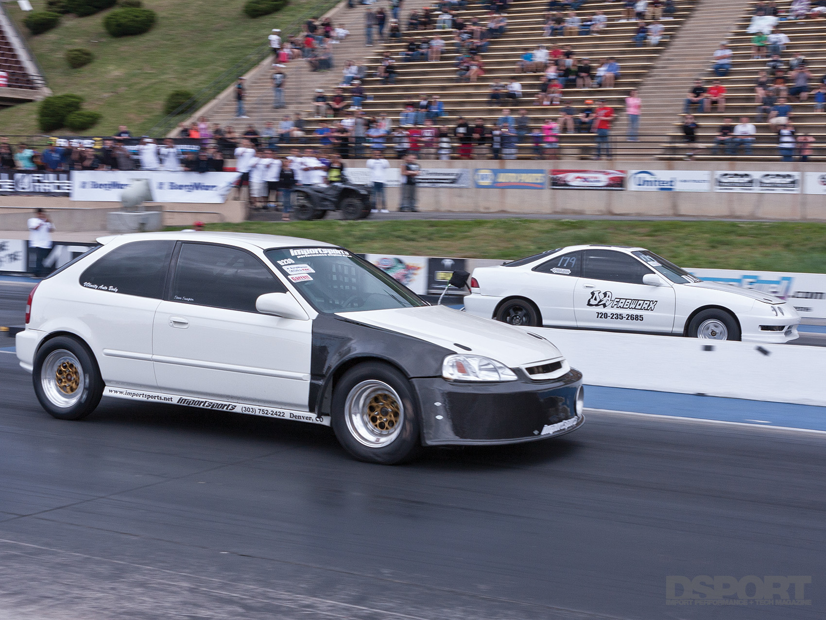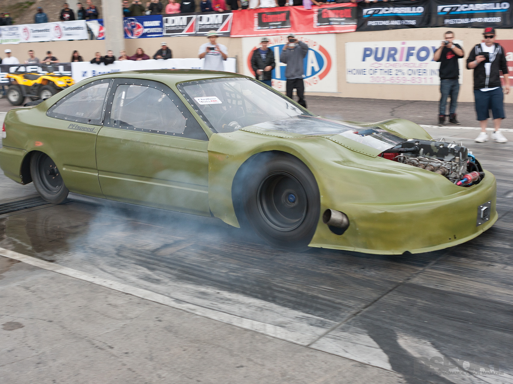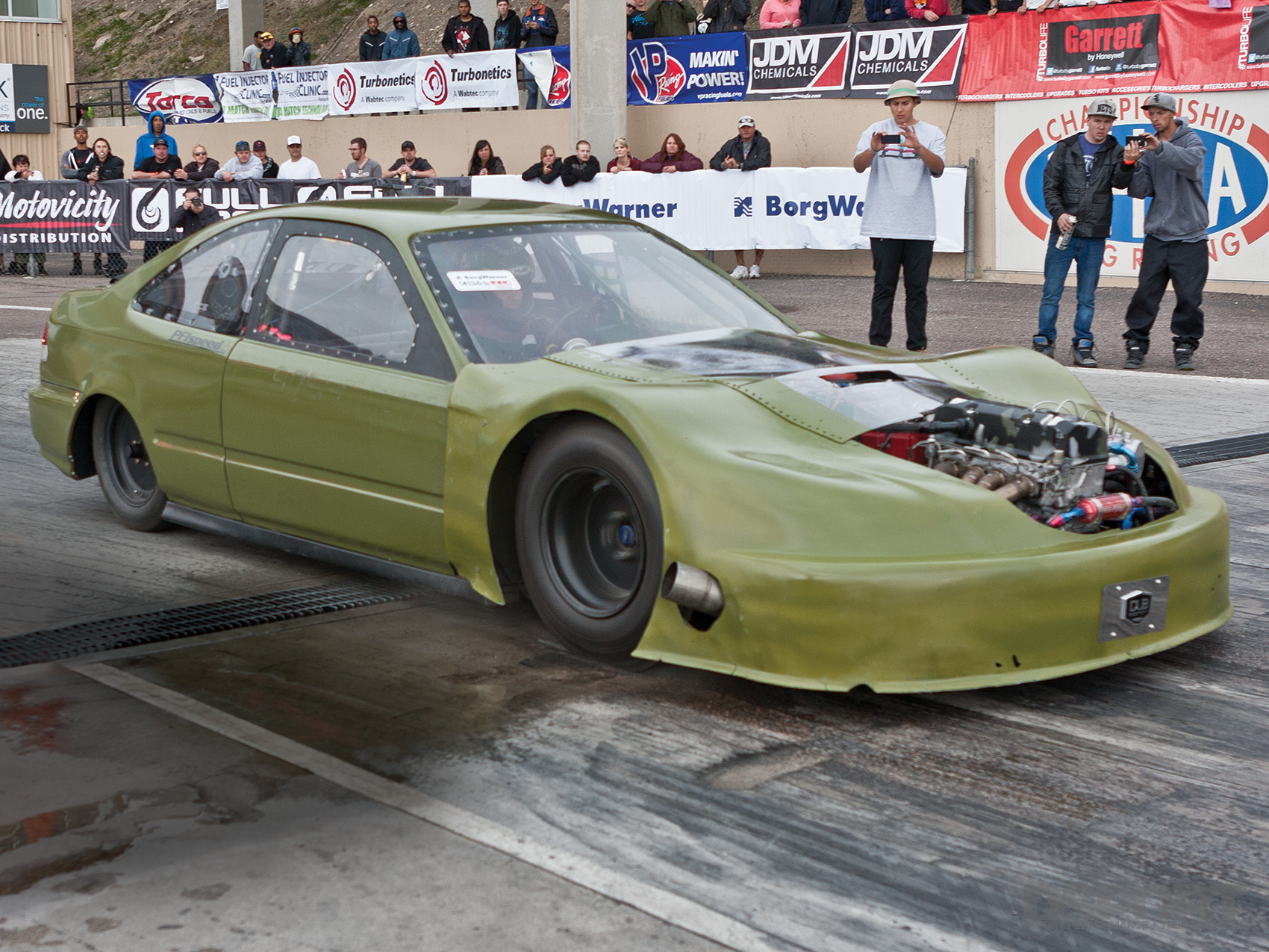 After the heads-up cars completed their first round of qualifying, the bracket cars swarmed the staging lanes and started round two of qualifying. Some unique rides like an R32 Skyline GT-R and the PFISPEED pivot-frame Civic kept the mix of bracket cars interesting. At 12:30pm, racing was stopped as a drizzle turned to drops. As the IDRC and Bandimere Speedway entered the war room to look at the latest radar images, it appeared the storm was going to be a one-and-done affair. It appeared that 30-45 minutes of rain would be followed by a break with no new storms on the horizon.