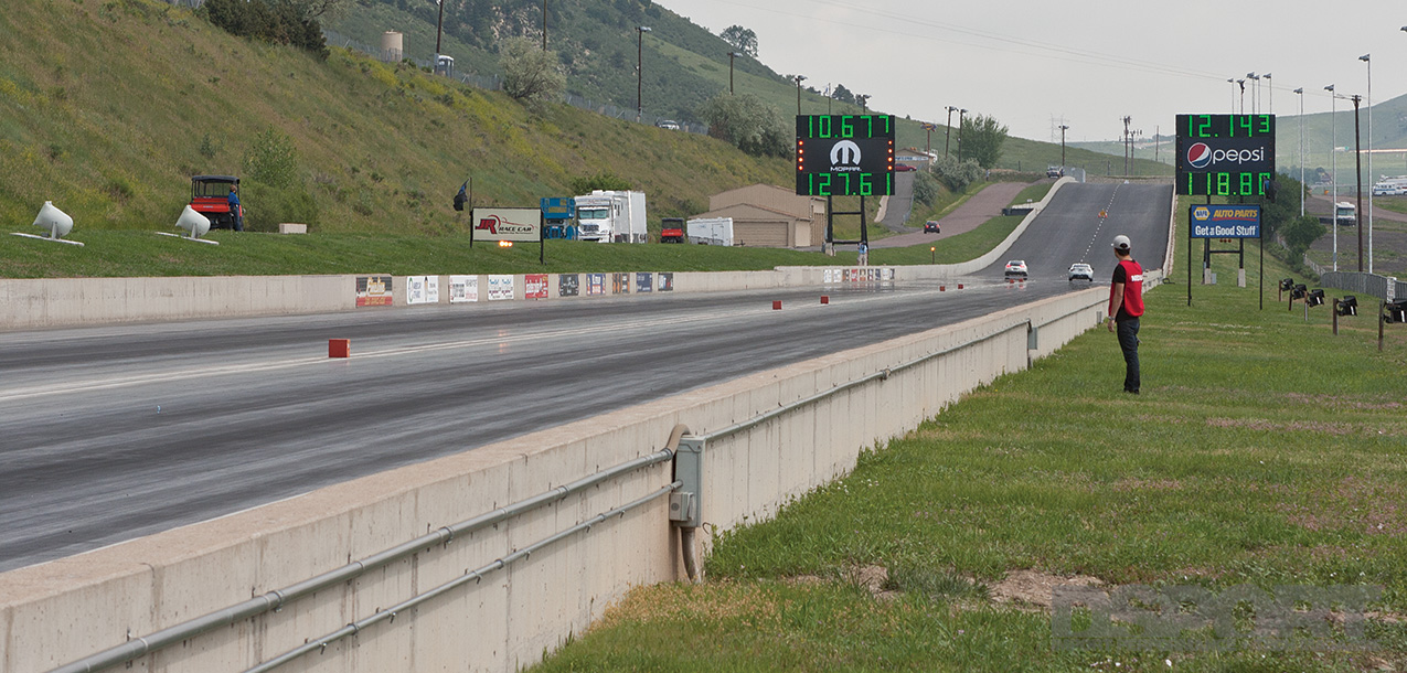 The prediction was spot on and 35 minutes later the rain stopped. The Bandimere track staff had blowers, sweepers and an even a jet dryer fast at work to dry the track as the sun made a much welcomed appearance. By 1:50pm, the second round of qualifying for the bracket cars was back underway. It looked like Mother Nature was going to cooperate.