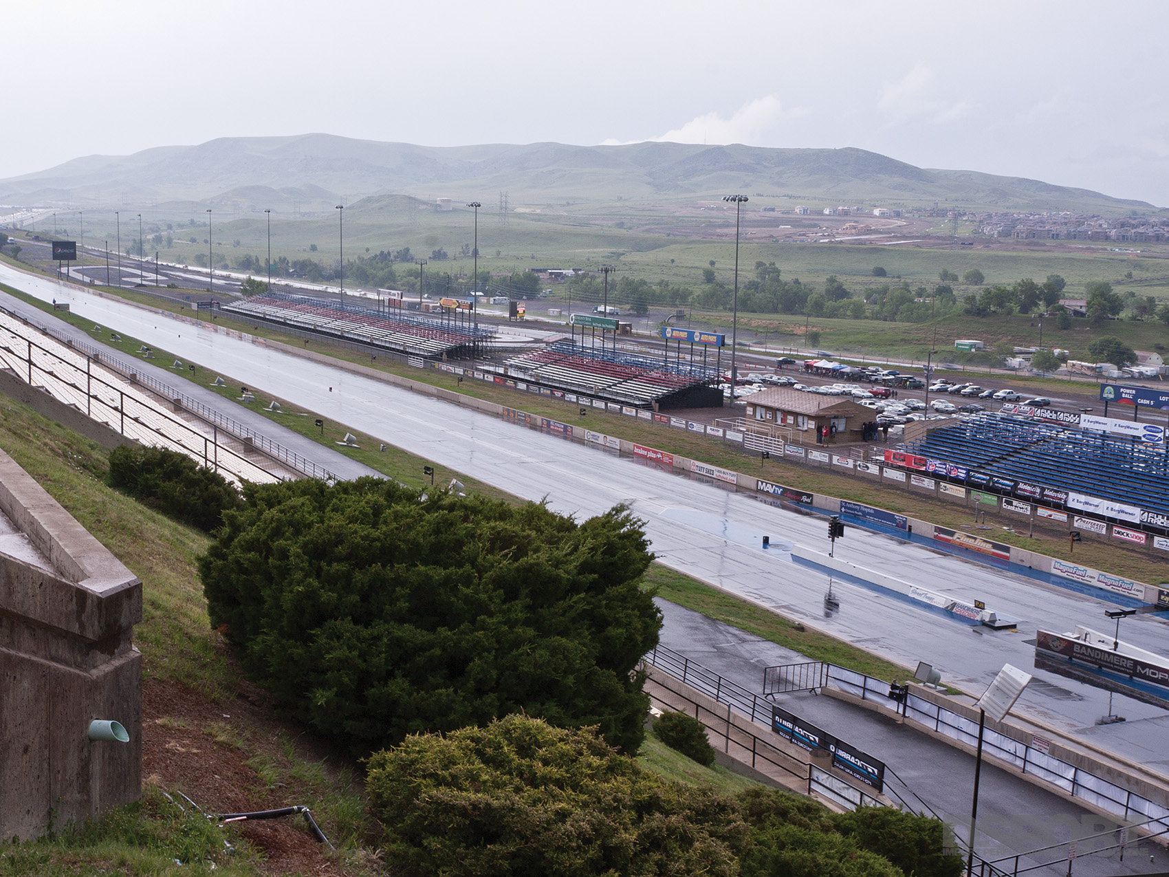 As focus shifted away from the weather and back to racing, a new storm was forming and getting ready to unload on Bandimere Speedway. By 3:15pm a light sprinkle at the top end of the track stopped the action. A review of the radar, showed a new system that was slightly larger than the first but moving a bit faster. With the heads-up cars loaded in the lanes for the second round of qualifying, everyone was anxious to see the top cars run again. But could it be done? With this storm appearing to want to hang around anywhere from 30 minutes to 3 hours, a decision had to be made. No one wanted the event called if the rain was going to let up, but no one wanted to wait much longer if the weather wasn’t going to allow more racing. The call was to wait until 4pm. If there was no rain at that time, the track would be dried and racing would resume. If there were still rain, the event would be called. By 4pm, the rain had not stopped so the event was called. The decision proved to be the right one as storms continued to pound the track late into the night.