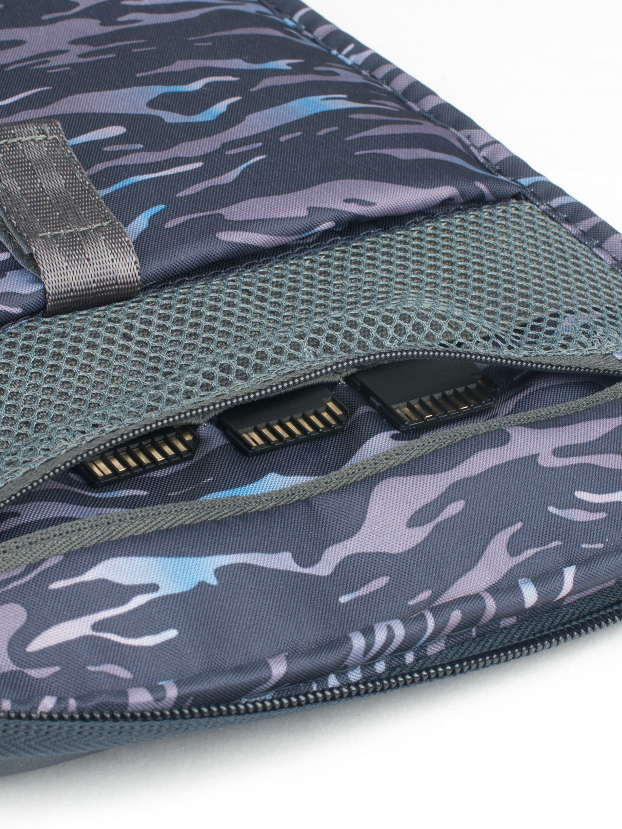 Water-resistant materials and float capability make the Kelly Slater H2O Mono Kit ready for the plunge. A Tensaerlite™ Aqua Tiger print shell and 1680D ballistic nylon provide durability and protection. Compatible with GoPro® camera with both housings (Dive Housing or Hero3® Housing), the H20 Mono Kit includes a custom molded, integrated compartment to hold the camera in place.