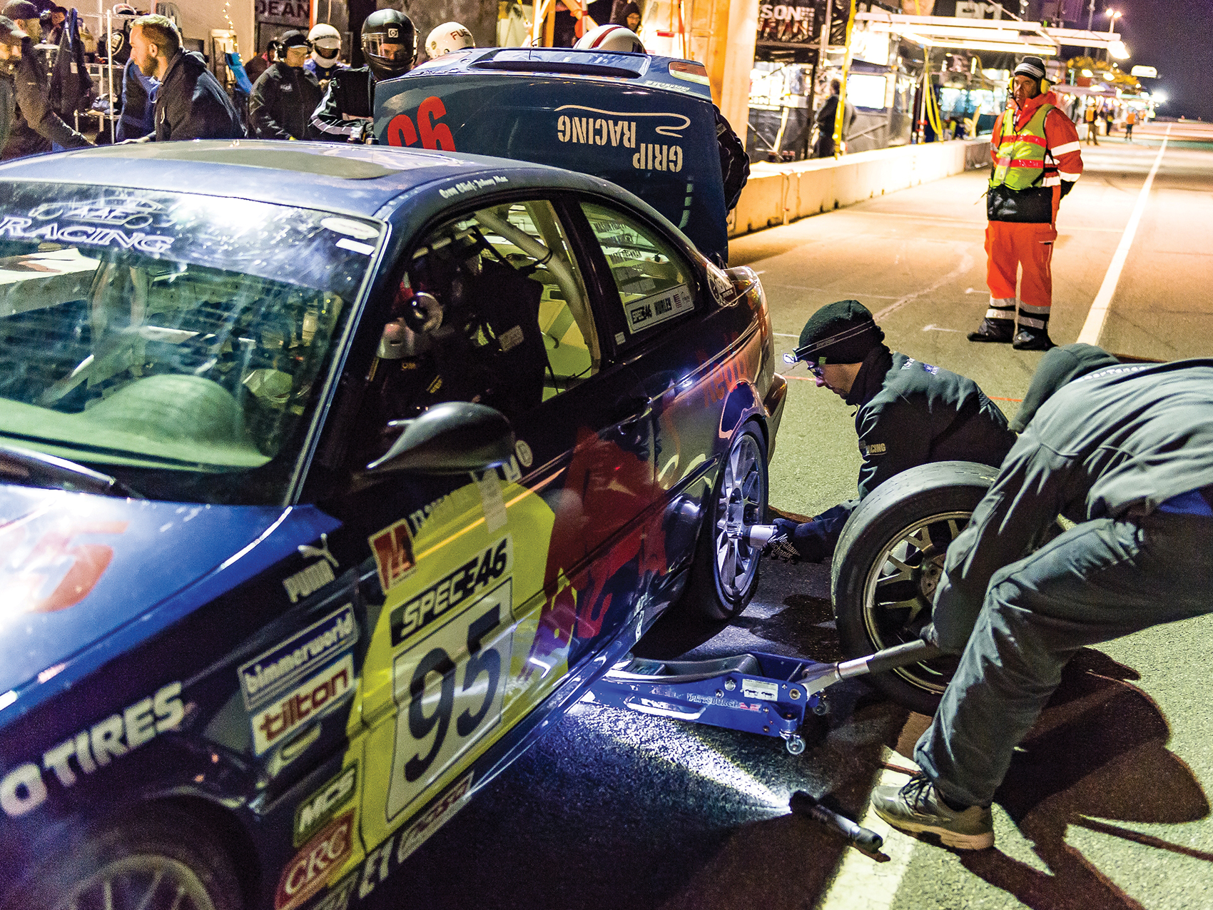 It was a close one. In true 25 Hour fashion, we saw a failure of a part that has never failed with all the teams racing on the Z platform. We broke a seal in our power steering rack 12 hours into the race. After getting out to a six-lap lead, we slowly gave it all back, stopping often to refill our power steering reservoir so that we wouldn’t seize the pump and take out the alternator and dry sump belt. We had a nail-biter of a finish for the win, becoming the first Nissan to stand on the top step of the podium in this distinguished event.