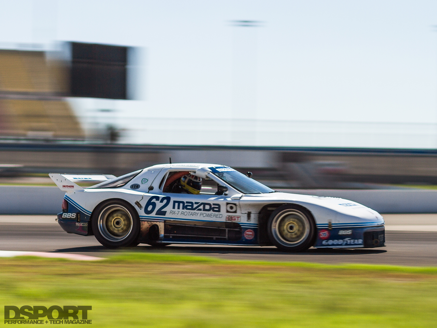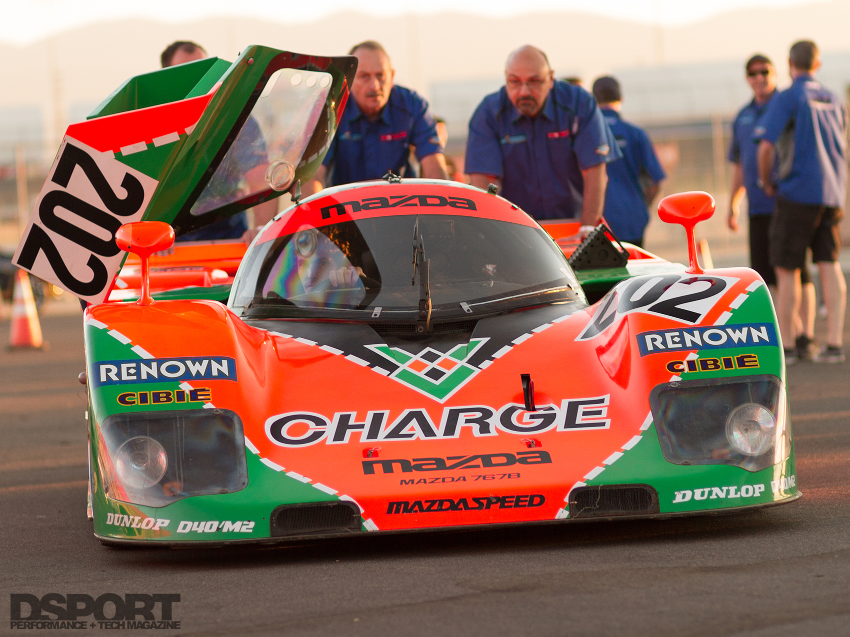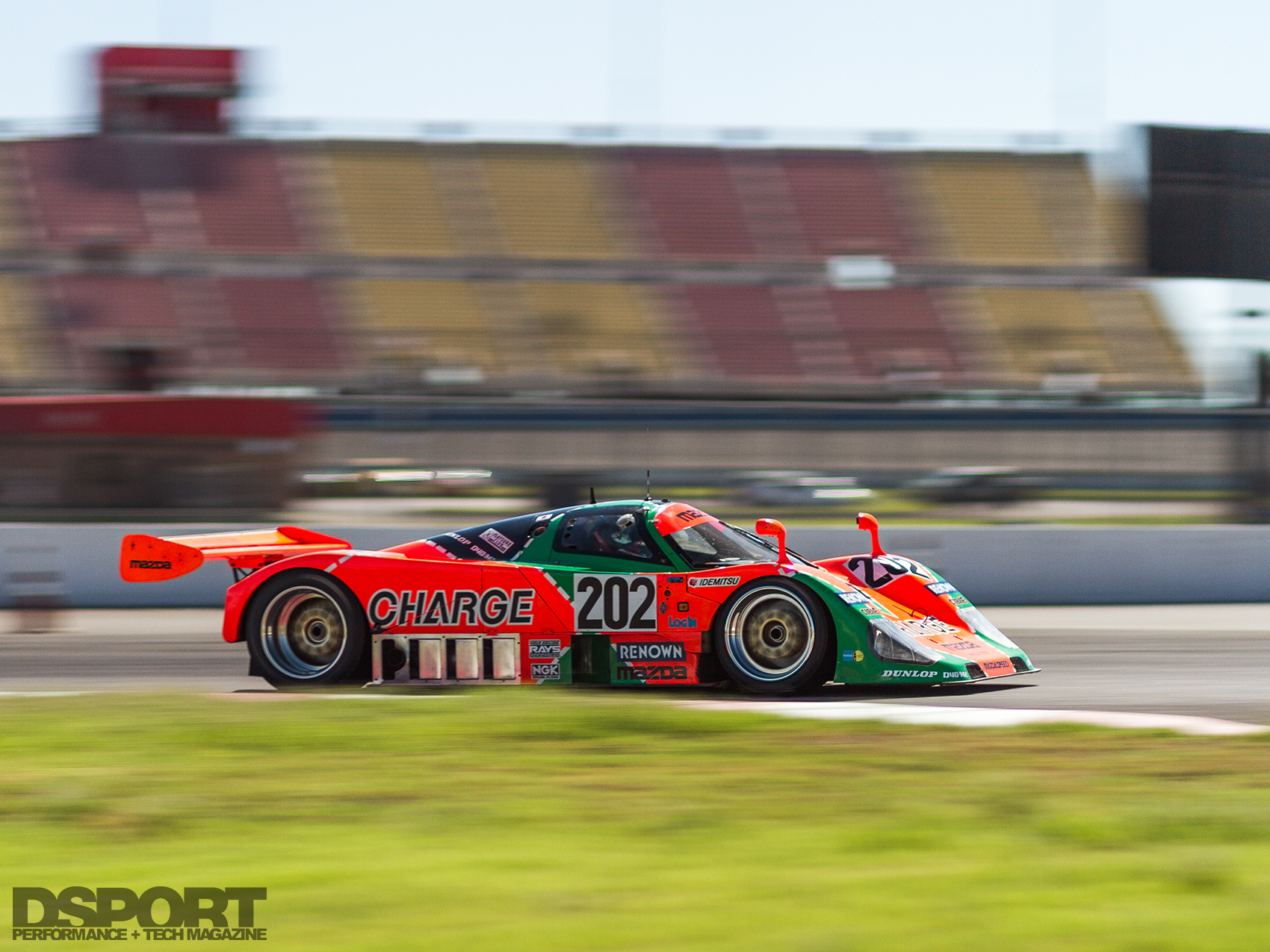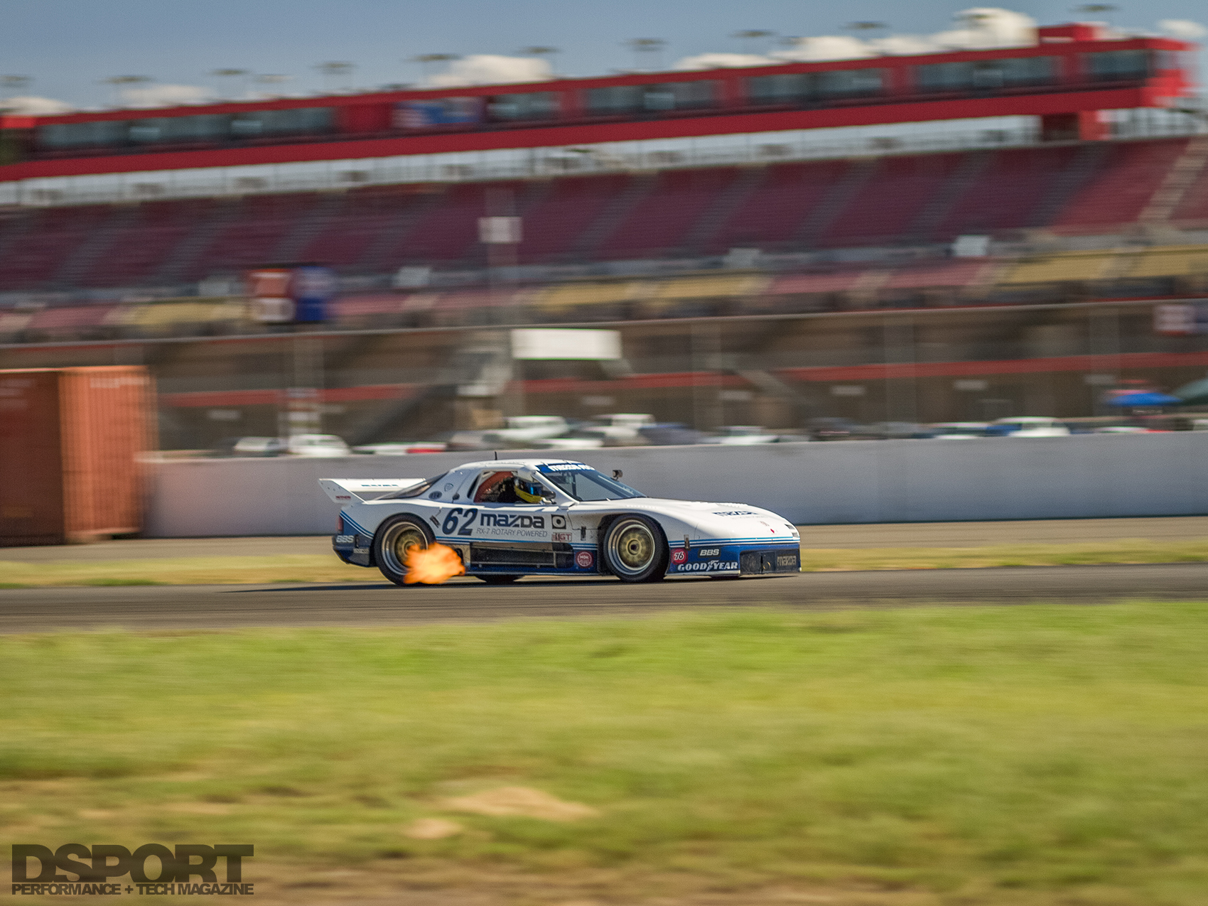 Although these cars spend much of their days in storage at Mazda’s US headquarters, they still get to play on the racetrack for events like these. These weren’t your typical parade lap exhibition runs, Mazda set these cars on track to demonstrate how they perform at full tilt. The drivers wound up the engines to redline, attacked the curbs on the infield, and showed off plenty of exhaust flames under deceleration to make for perfect photo ops.