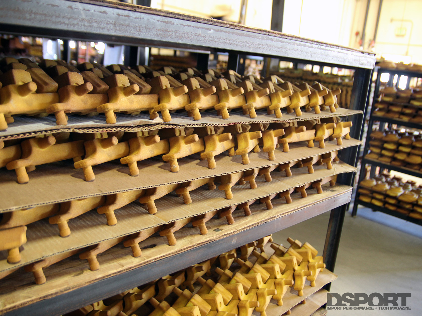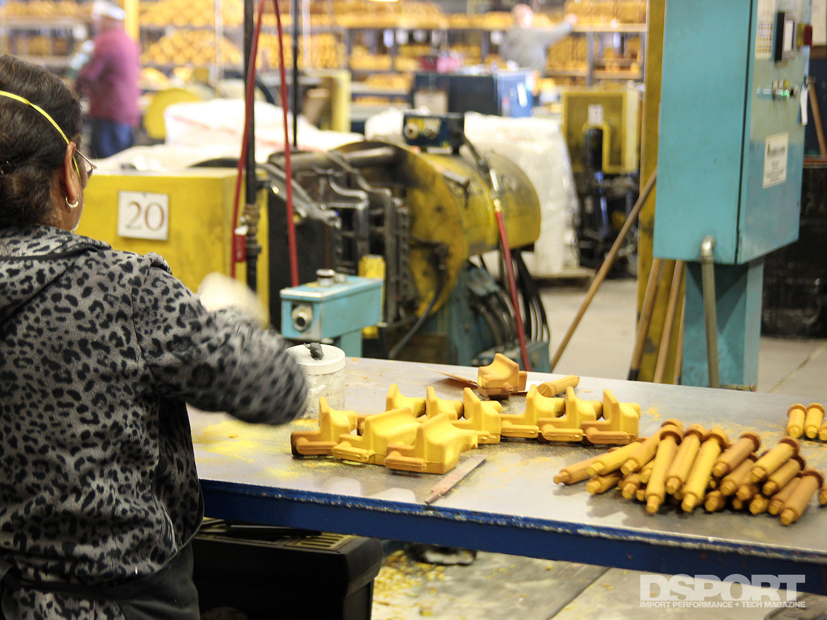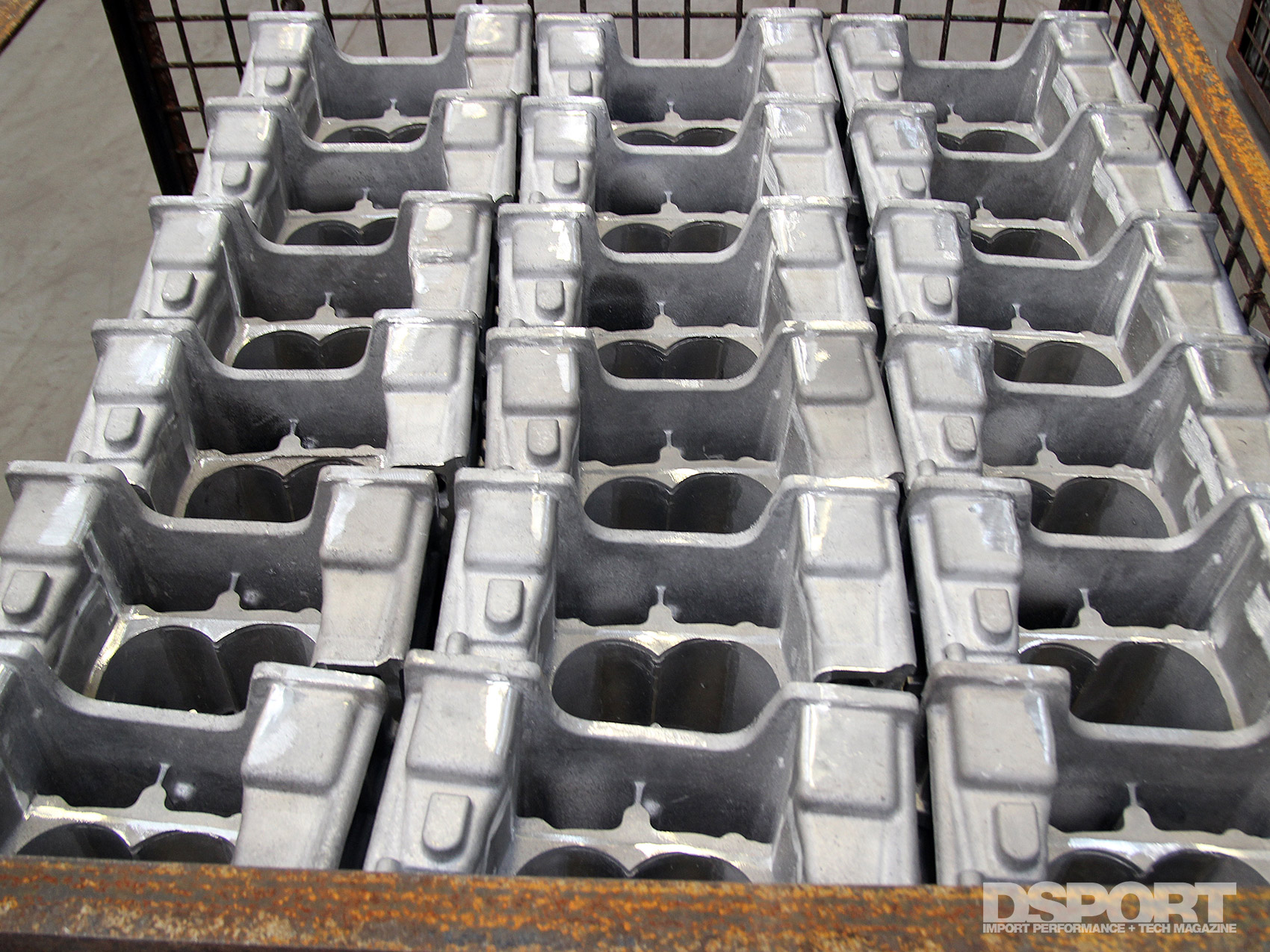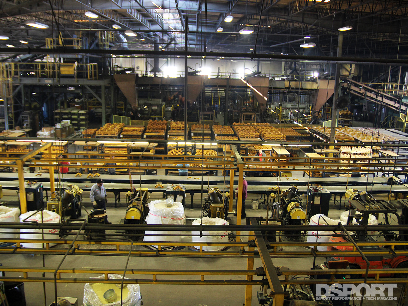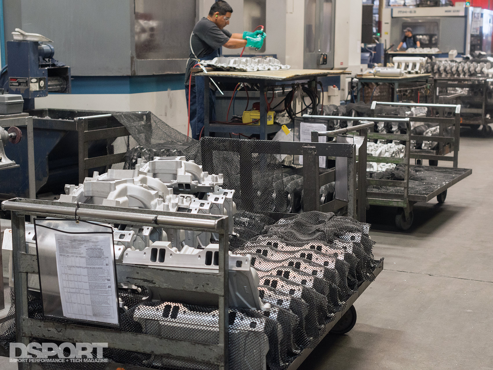 The 185,000 square foot Edelbrock Foundries in San Jacinto, California produce over 3,000 castings per day. Molding lines, core machines, a cold set core machine and a self-contained sand handling system fill the foundry, outputting high strength and high precision castings.
