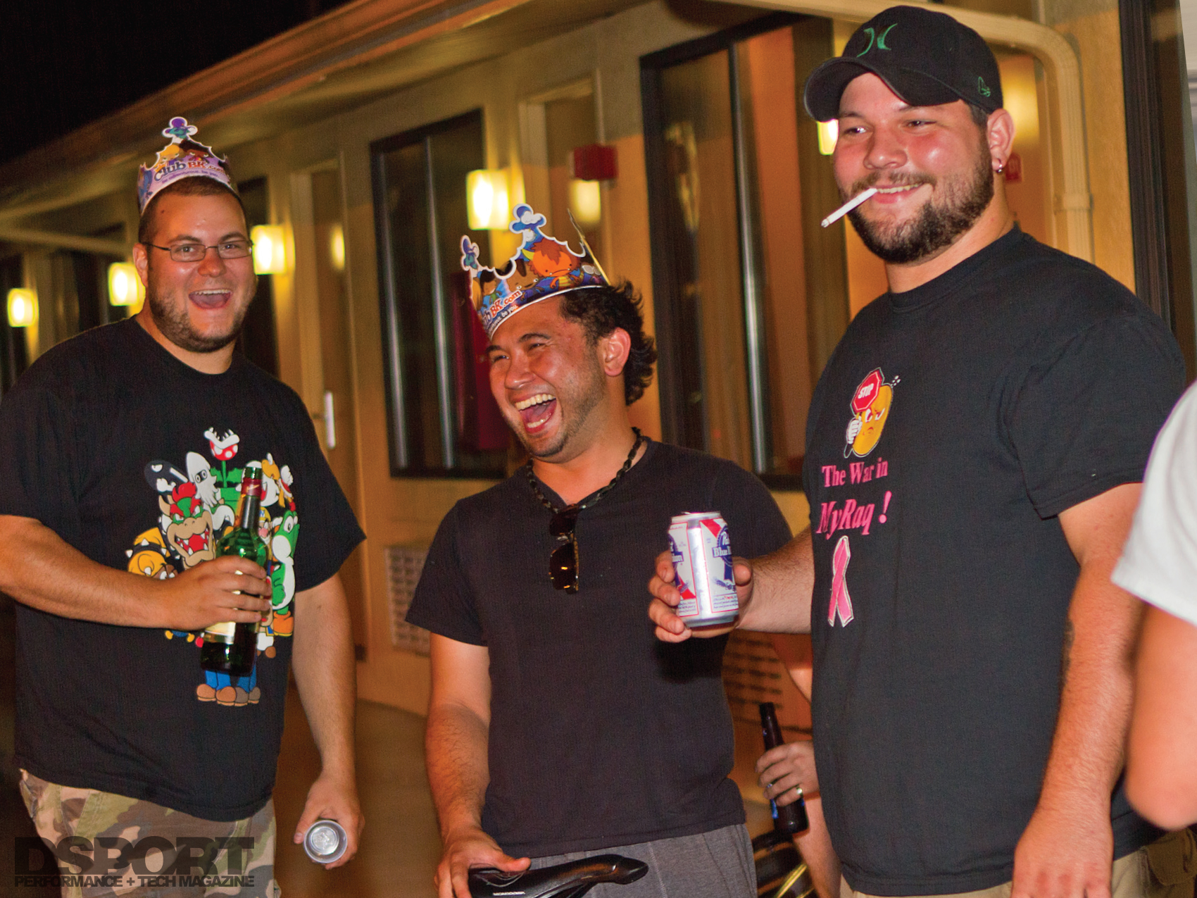Cruising around the packed hotel parking lots after sundown is like experiencing an automotive tailgate party that rages into the night. Along one main stretch of road in Norwalk, several hotels get booked solid with Shootout attendees practically a year in advance. The parking lots are full of cars, trucks and trailers. Some race cars can be seen being worked on, some being cleaned. Work your way through the hoards of people in the parking lot and you’ll likely to find a racer doing some late night race prep or repairs such as a transmission swap. Along the streets, people sit in lawn chairs waiting for cars to blast by the hotels (not recommended as the police heavily patrol the area). Although things sometimes get a little crazy, like the infamous jet ski in the pool incident from 2010, for the most part everyone respectfully enjoys themselves and the community vibe is strong. If you come to the Buschur Racing Shootout , this is one aspect of the weekend you have to see and experience.