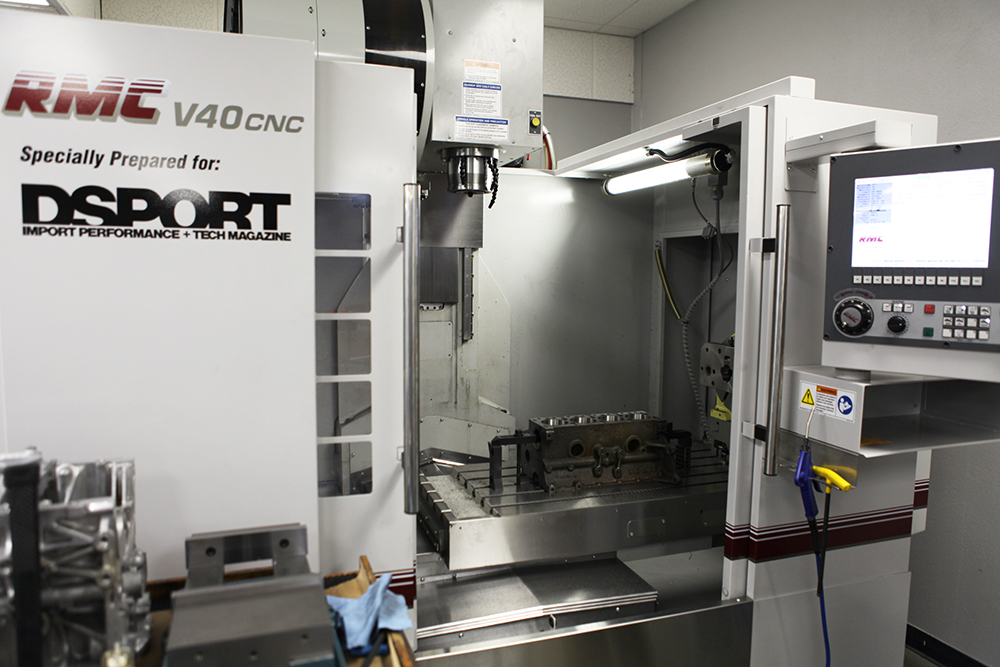 [pullquote]WE’VE GOT EVERYTHING TO BUILD A BARE BLOCK INTO A 1000+ WHP RACE ENGINE[/pullquote]Magnus had worked at Cosworth for over 20 years, building almost all of the Cosworth EJ25 engines and having a huge part in the Champ Car and Formula 1 engine programs. After adding a few different machines to our shop to supplement the acquisition from Cosworth, we’ve got everything to build a bare block into a 1000-plus-whp race engine. We also added a Superflow SF-750 flow bench and a Roehrig 5VS shock dyno to our arsenal of testing equipment. By the time you read this, our machine shop will have received an RMC V40 four-axis CNC engine machine center. This machine will give DSPORT the ability to automate most of the cylinder block boring and honing processes and other tedious machine work that makes engine building such a long and strung-out process.