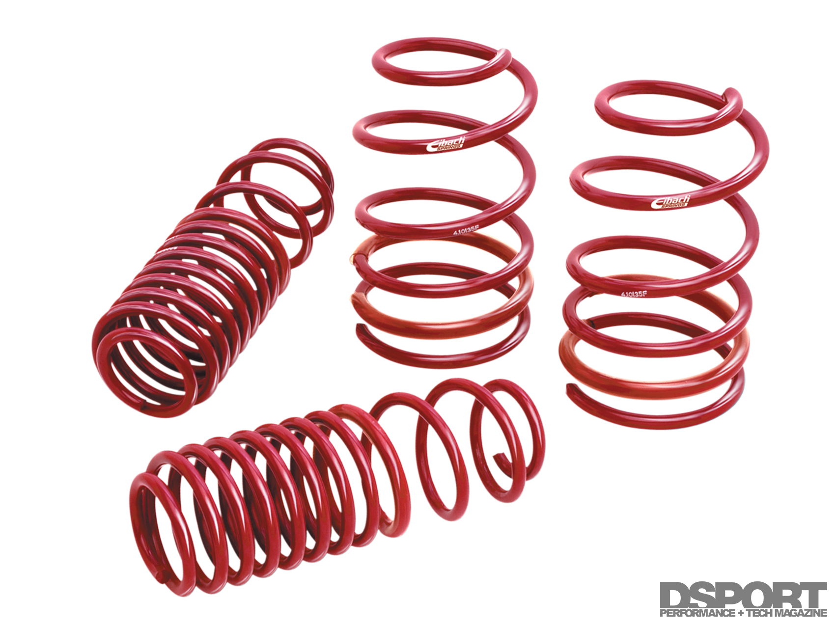 Lowering springs provide a quick and affordable method to improving a car’s look and handling. These springs replace the factory coils with a shorter and stiffer option. Lowering the car will drop its center of gravity for better handling while improving its looks (as long as it’s not slammed to the ground). In order to prevent bottoming out or overusing the suspension components, lowering springs generally run stiffer than factory equipment. If you go down this road, keep in mind that the springs may alter the functionality of the factory shock absorbers by preloading them at all times, leading to over-pressurization and blown seals. A set of lowering springs with performance shocks to match is your safest bet toward improved performance and longevity.