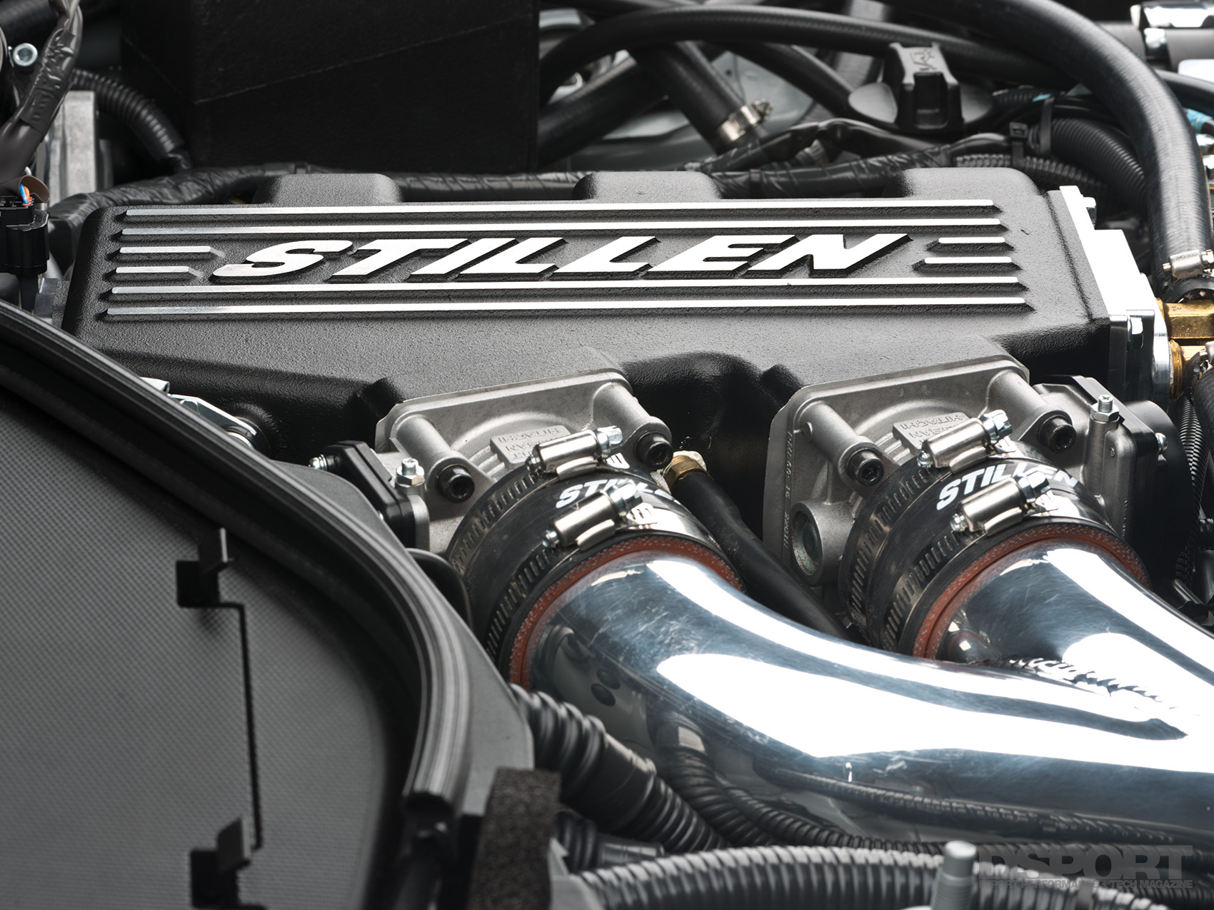 In addition to turbochargers and superchargers, the last power adder to the list is nitrous oxide. Nitrous-oxide injection systems are an easy bolt-on solution to add substantial power. When a nitrous-oxide system is activated, a mixture of nitrous-oxide and gasoline is injected into the intake. The expansion of the liquid nitrous-oxide into a gaseous form absorbs the heat out of the surrounding air. The result is a decrease in inlet air temperature, which translates to cooler and denser air entering the cylinders. Since cooler air is composed of more oxygen molecules (for a given volume), more fuel can be combusted and more power can be generated. Nitrous-oxide injection (on factory engines) can add a 5- to 10-percent increase in power in just an instant. With a capable engine in place, nitrous-oxide systems can add up to hundreds of horsepower.