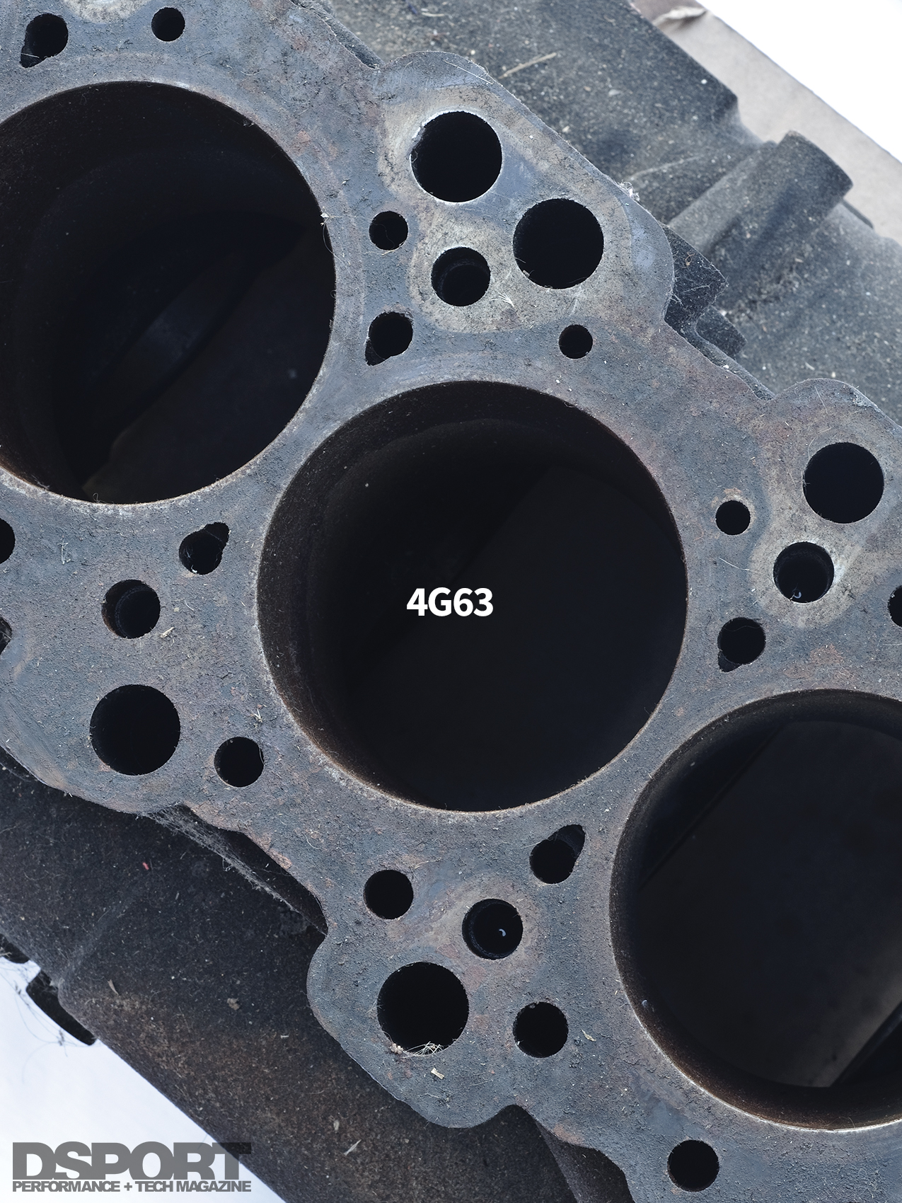The 4B11T with a semi-closed deck design compared to the solid- deck design of the 4G63.