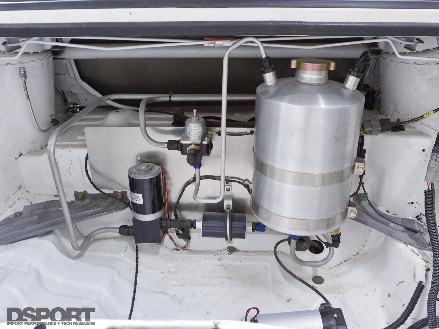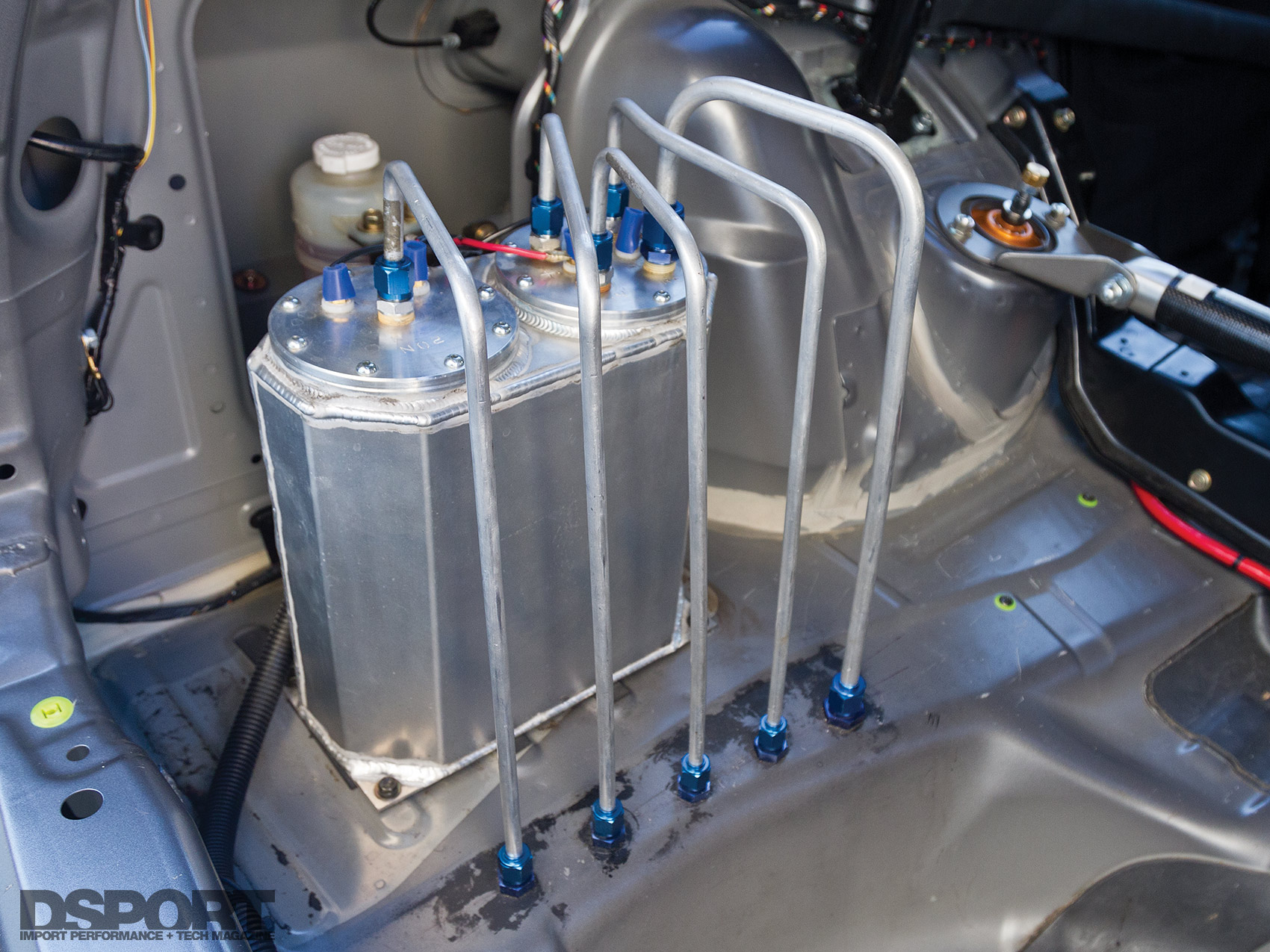 A hard launch or a high g-force turn can cause fuel to slosh away from the fuel pump pickup, causing engine damaging fuel starvation issues. A fuel surge tank helps by maintaining a constant reservoir of fuel outside the fuel cell or gas tank.