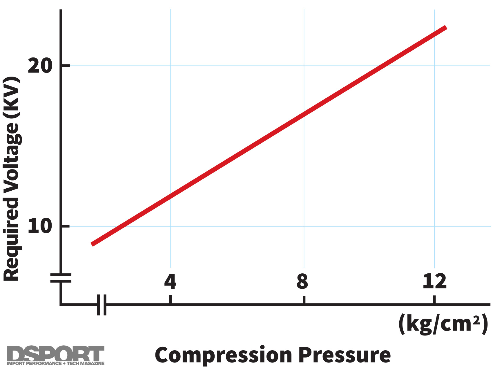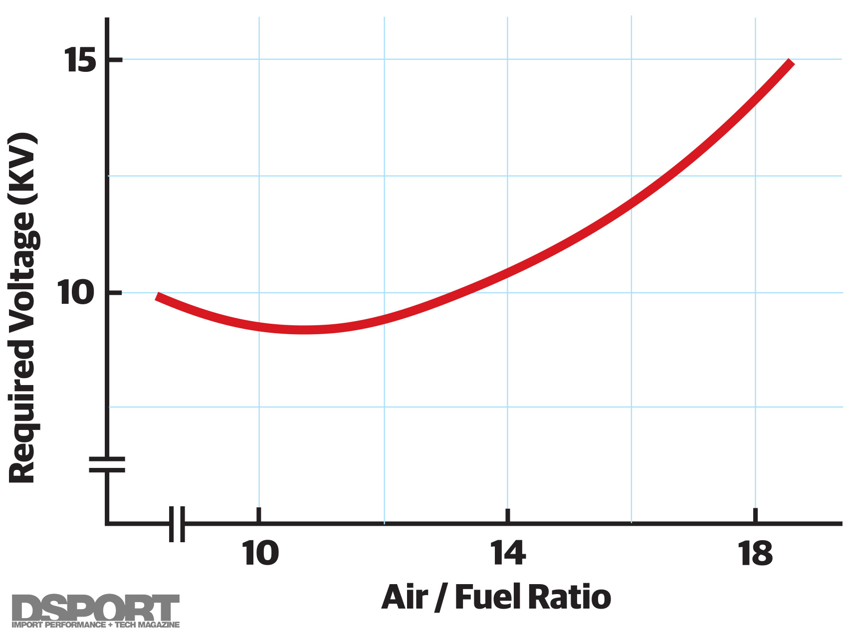 The required voltage to properly ignite the air/fuel mixture within the combustion chamber goes up as the mixture becomes leaner and the cylinder pressure increases.