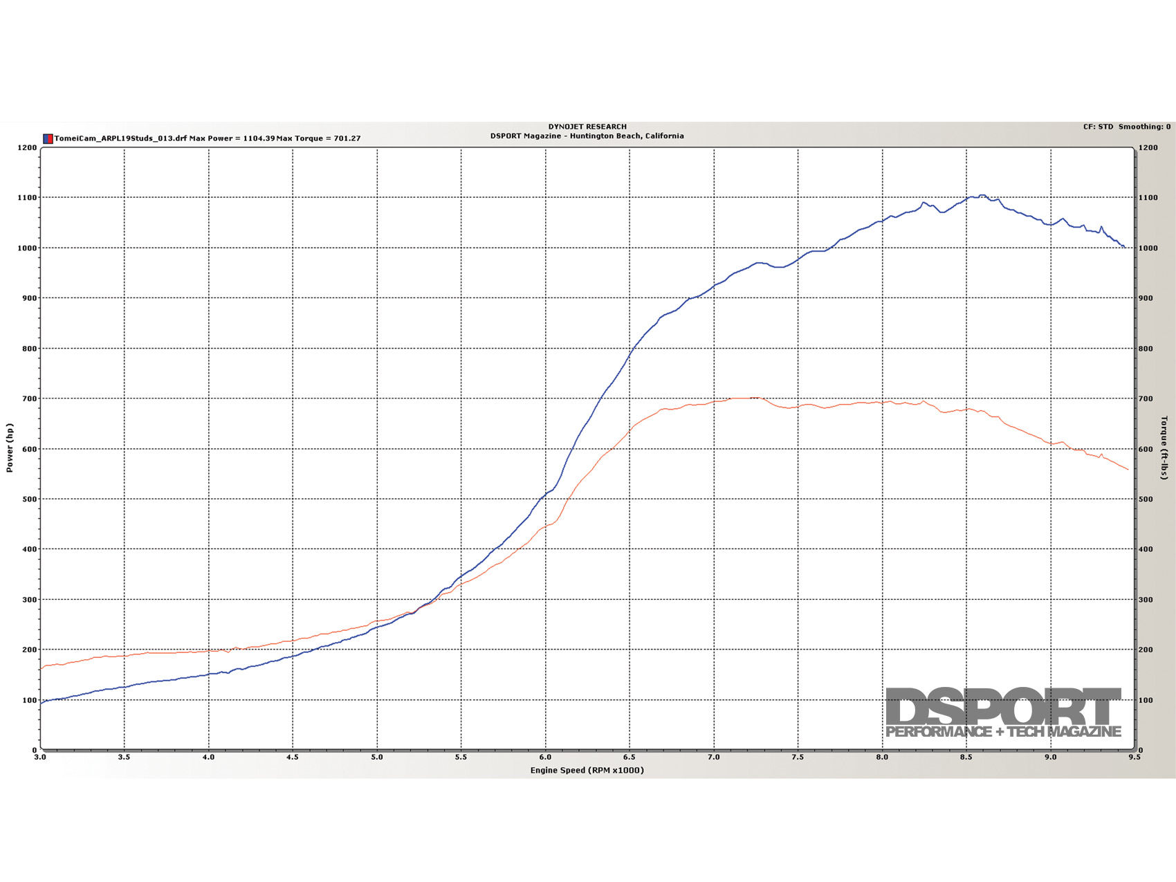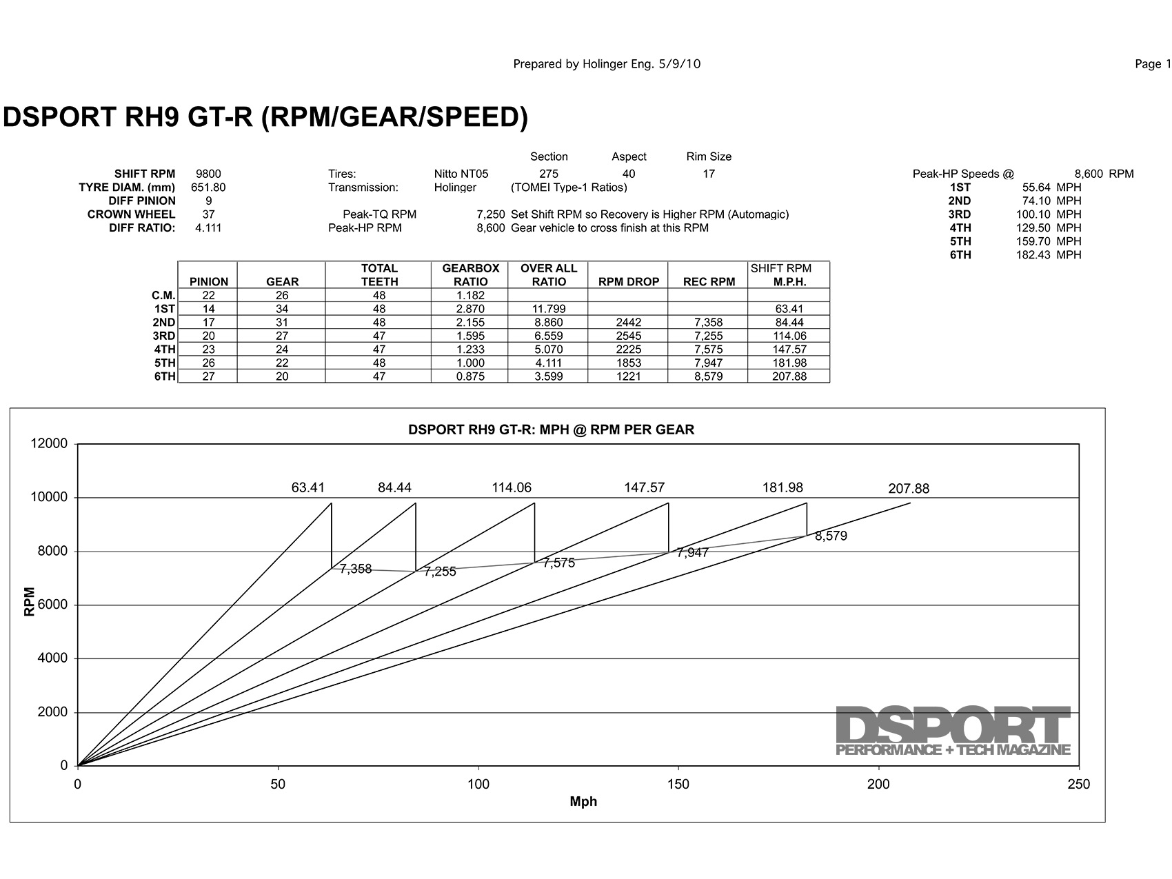 Following the above rules, our Project RH9 GT-R must be shifted at 9,800 RPM or higher to avoid a drop of engine RPM below the peak-torque RPM of 7,250 RPM. With the new engine, we’ll take engine RPM to 10,500 RPM on the dyno to get the shape of the enitre power curve. This will allow us to pick the exact shift RPMs in each gear to satisfy the second rule. Besides providing the best balance and control, these shift points will also deliver the quickest acceleration as they cover the powerband of the curve with the highest average horsepower too.