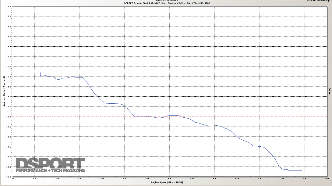 Let’s say that you have an intake that adds about 5.0-percent more power when installed on a stock vehicle. Now, let’s say you have an exhaust system that adds about 5.0 percent of power on a stock vehicle. While you shouldn’t expect to get a 10.0-pecent gain from the two, it’s realistic to expect to see a performance gain with both items in the realm of 6.0- to-9.0 percent. Yet, the factory- programmed Scion FR-S ECU says 1+1 = 1. We confirmed the severity of the 5.0-percent rule when we found that the Scion FR-S simply didn’t gain any additional power when an aftermarket exhaust was added after the addition of an aftermarket intake system. On DSPORT’s DynoJet 424xLC Linx dyno, the number that could never be exceeded was about 182 wheel horsepower. Stock horsepower figures checked in between 173 and 176 horsepower when tested on different days.