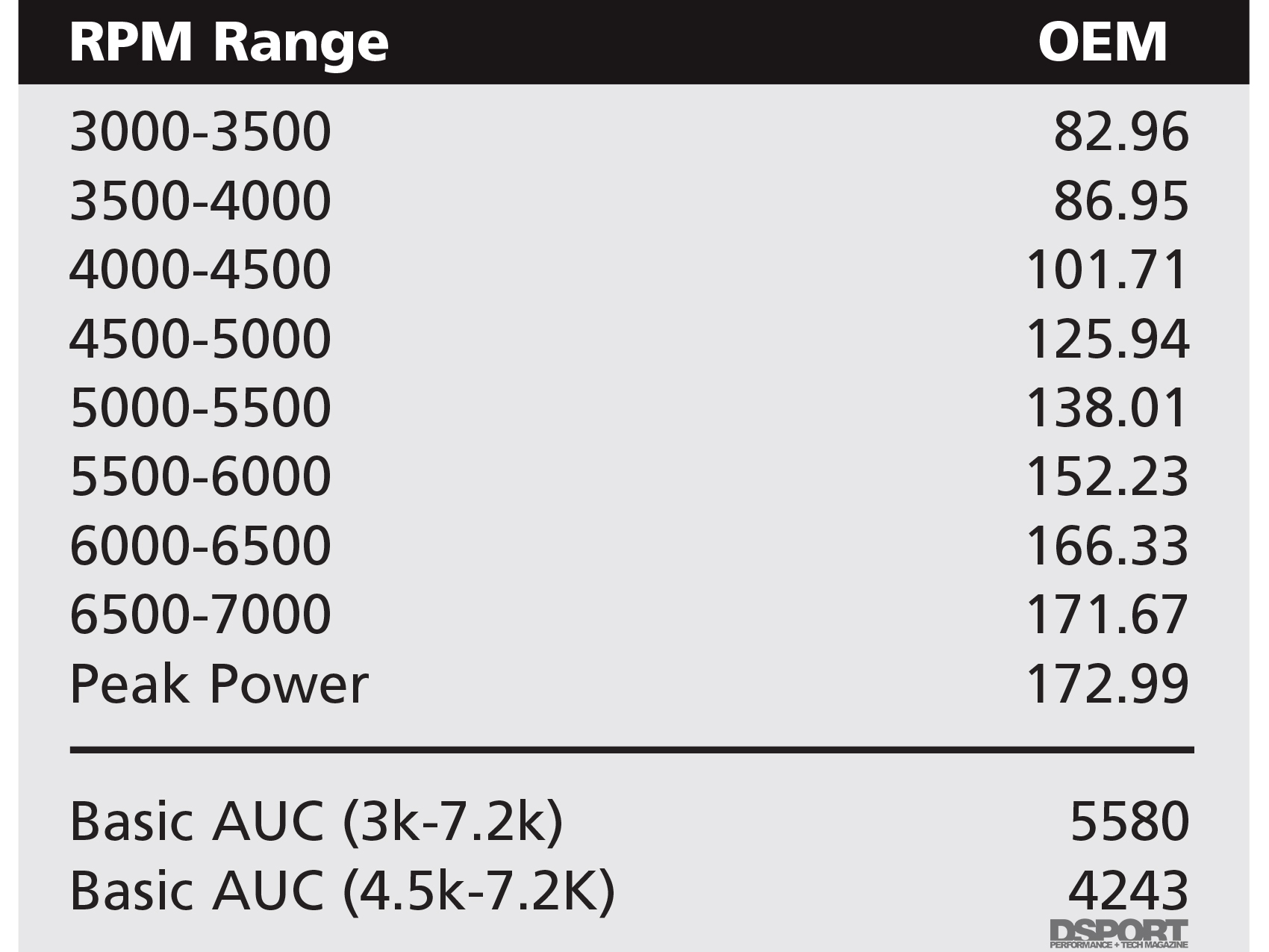 Because the ECU in the Scion FR-S has tables built in that essentially limit the amount of additional power that can be made, dyno testing bolt-on products on the vehicle proved extremely challenging. Based on over 250 dyno runs that we conducted, we found that the ECU seems to only allow performance gains on the order of about 5.0 percent. Adding the additional components to allow more additional power production with the factory-programmed ECU still only delivers that 5.0 percent gain.