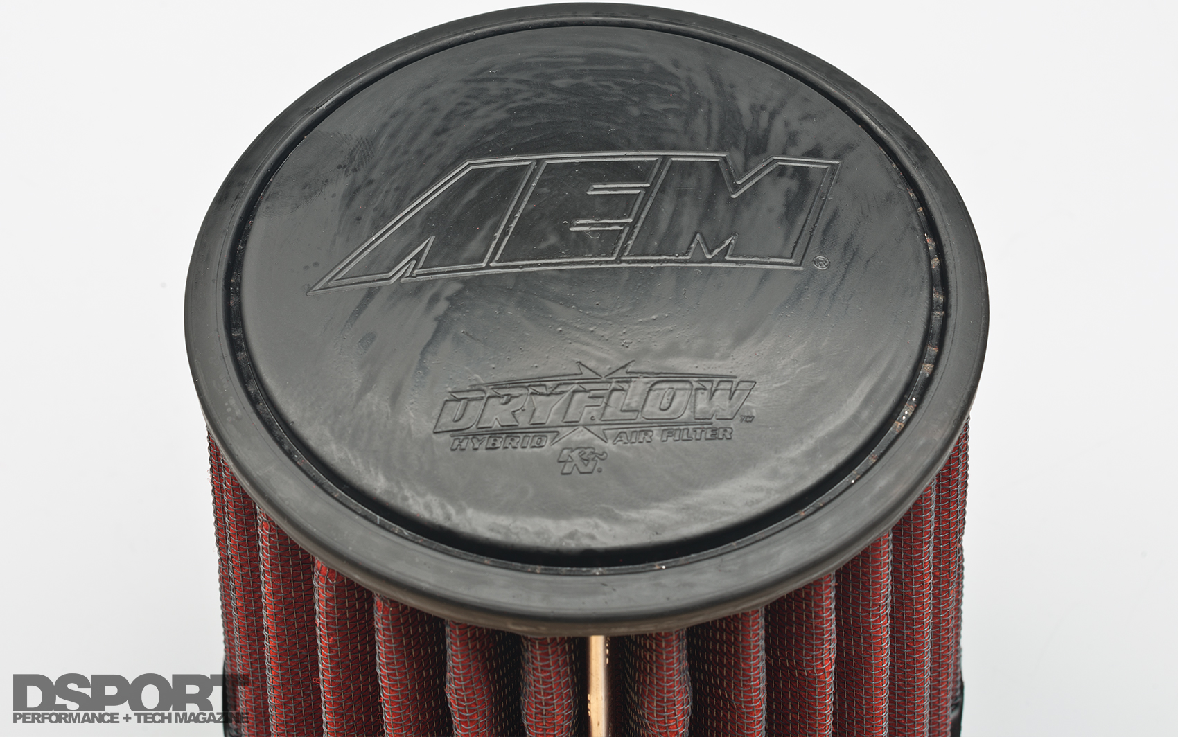 (Left) This molded inlet allows the AEM ETI to draw in cold air. (Right) Dryflow technology means no oil and no chance of over oiling.