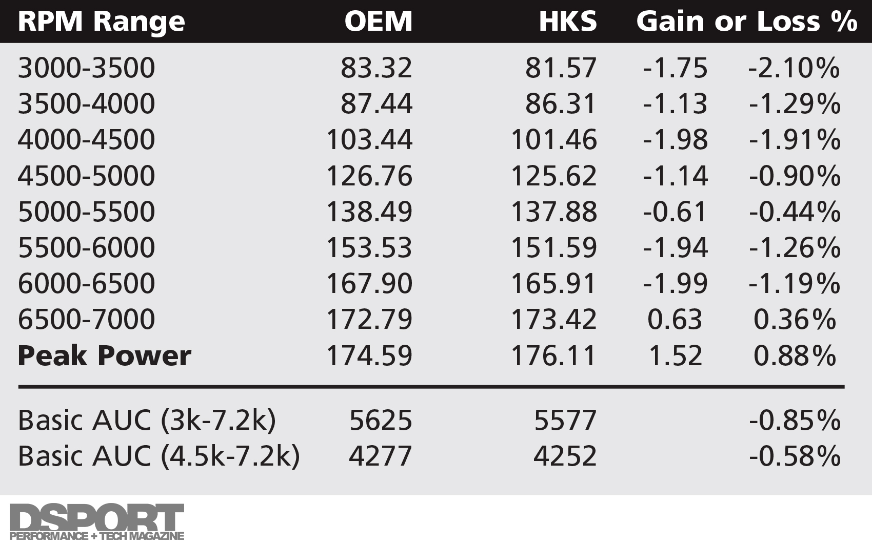 – No performance gains over OEM until 6,700 RPM