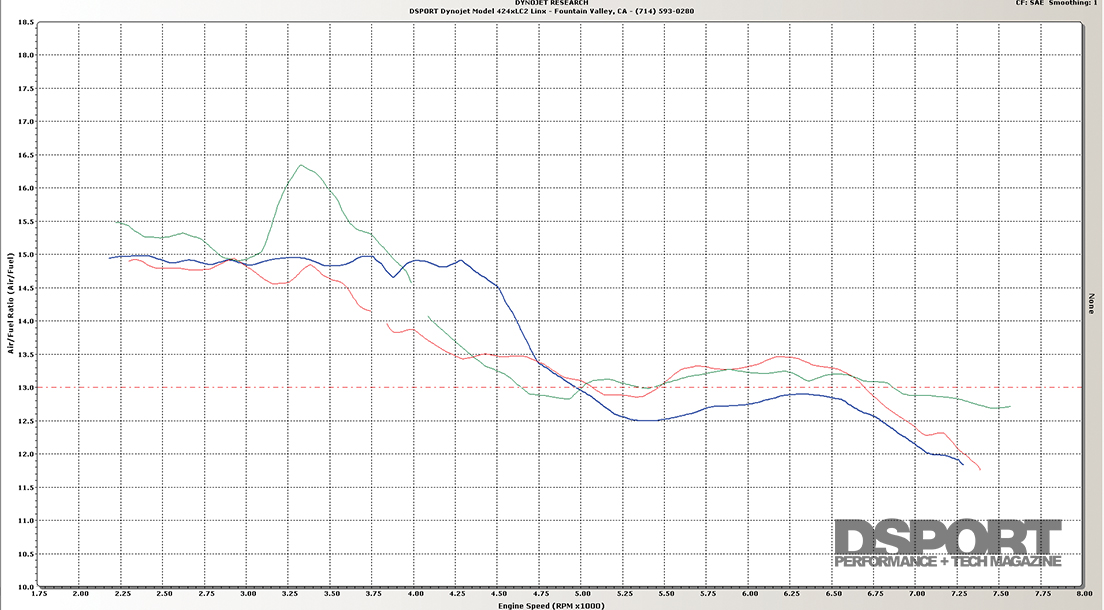 Analysis: Solid performance gains in an affordable system. A/F ratios are very close to OEM, yet additional performance is realized.