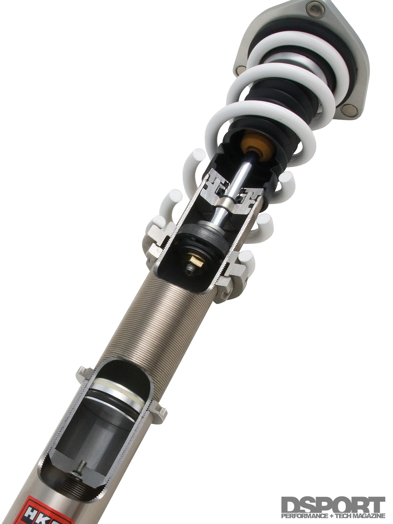 Almost all dampeners today, stock or not, are charged with nitrogen gas. The primary function of this charge is to prevent the formation of foam in the oil of the dampener. Some of the high-end racing coilovers that feature an external fluid reservoir may also allow pressure adjustments to the nitrogen charge. Changing this pressure can also affects how the dampener performs and provides further adjustability to the suspension.