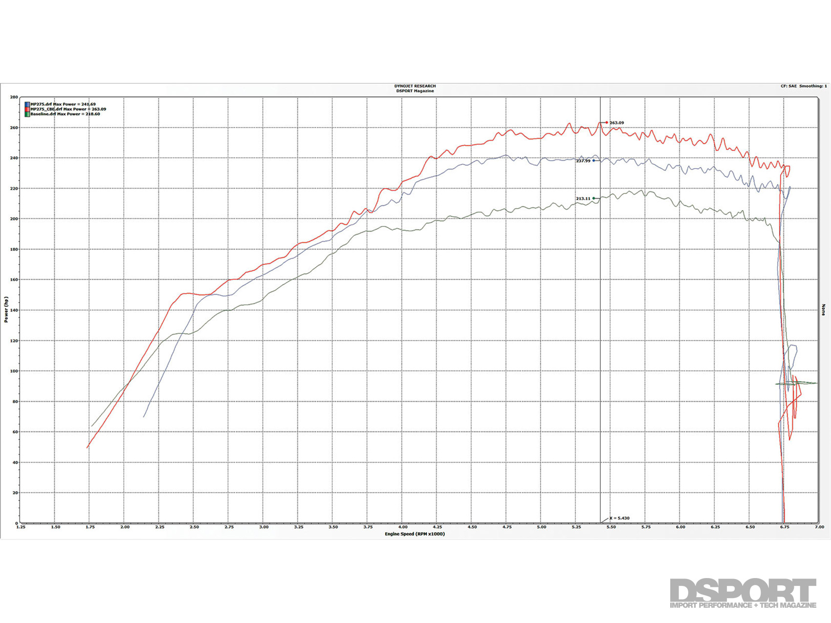 Most power upgrades will yield gains in certain areas but losses in others. However, the Mountune MP275 package and exhaust system realized gains across nearly the entire RPM range. Our test vehicle baselined at 218.6 wheel horsepower and 276.8 lb-ft of torque.