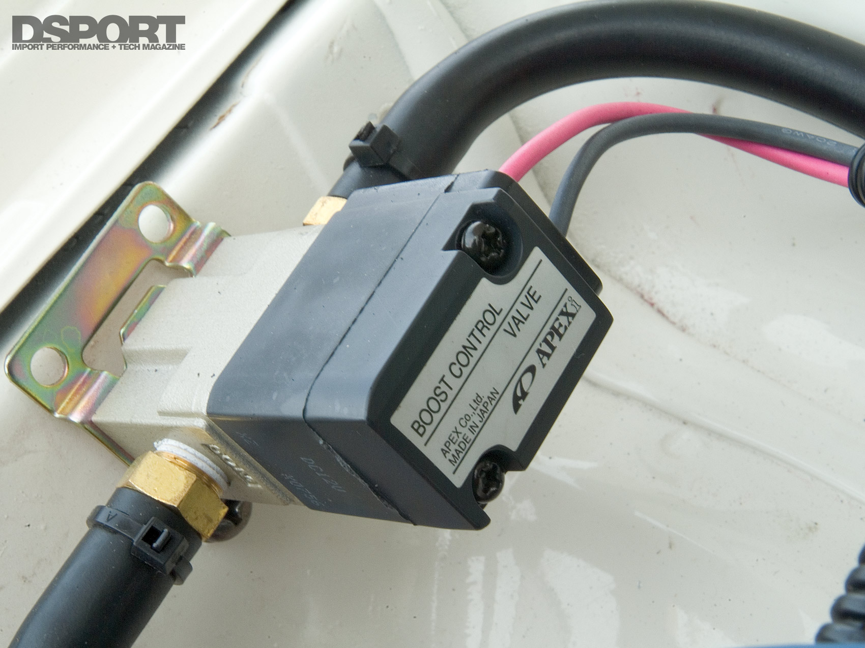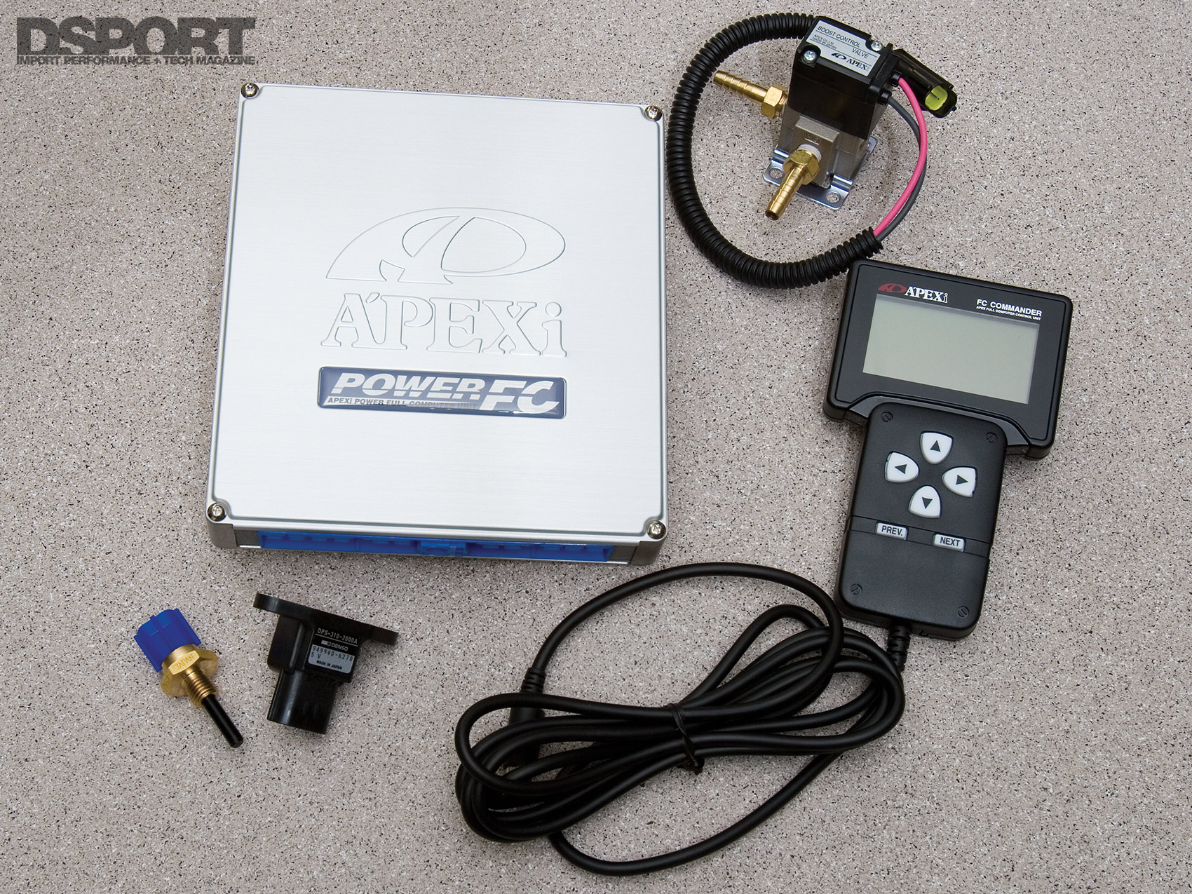 We chose the Power FC D-Jetro version (p/n 414AN024), which converts the engine management from the factory mass air flow system to speed density. To regulate boost directly from the Power FC, we also installed an A’PEXi Boost Up kit (p/n 415-A013). The Boost Up kit includes a 3.0bar MAP sensor capable of measuring up to 28psi of boost. The intake air temperature sensor harness (p/n 415-XA03) and the intake air temperature sensor (Mazda p/n N3A118845) were also installed, completing the D-Jetro conversion.