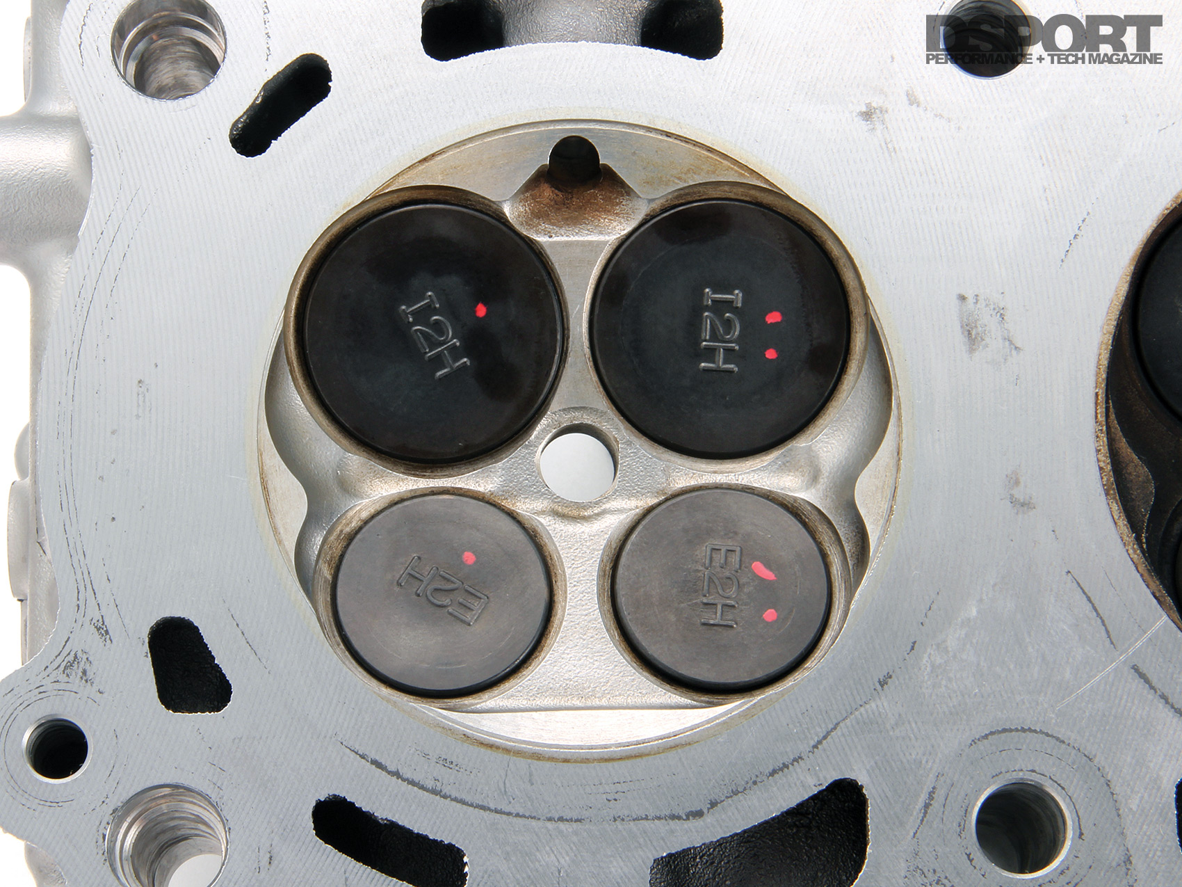 The intake port size is quite large, similar to what’s typically found in an inline race engine. The intake choke diameter measures 33 mm. On the exhaust port, many similarities are found to the EJ design.