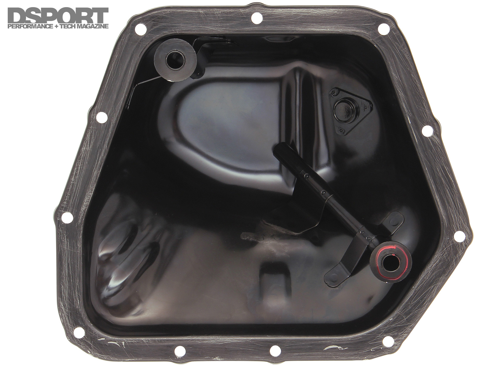 The trochoid shape of the oil pan has slightly changed; whereas the outer dimensions are almost unchanged. One drawback is that the position of the oil filter is too far from the main galley. Ideally, the oil filter would be positioned on the main galley. Under conditions of high loads and low engine speeds, a significant move of the VVT devices could potentially cause an unwanted drop in oil pressure.