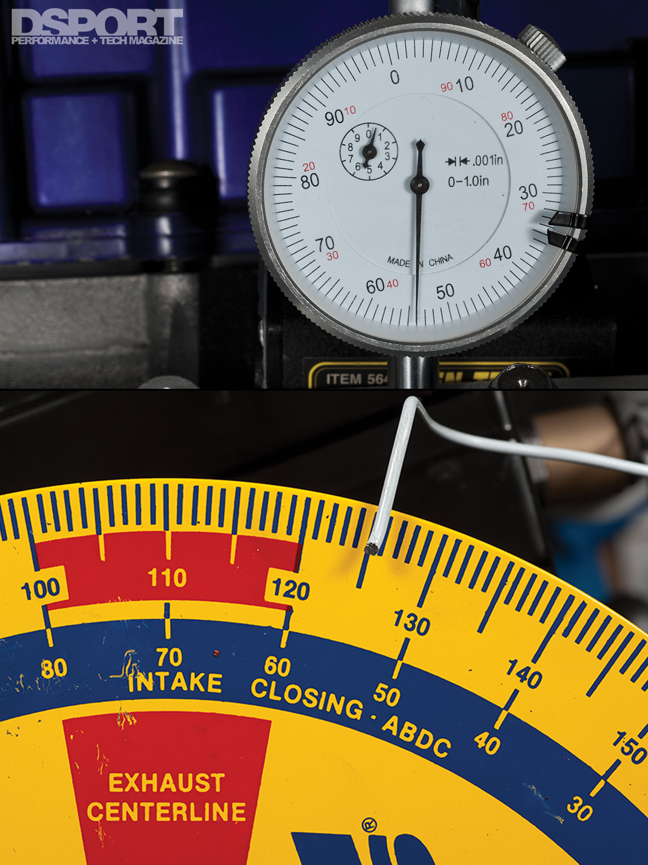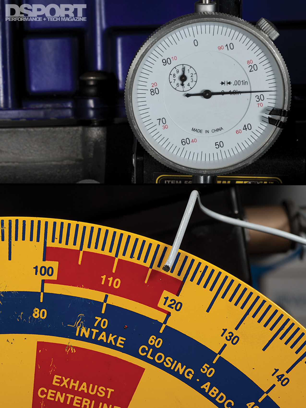 6. Now here is the part that requires finesse. Slowly rotate the crankshaft while watching the dial indicator. Once you get to 5 degrees before the manufacturer’s specified exhaust centerline, record the values indicated on the dial indicator.